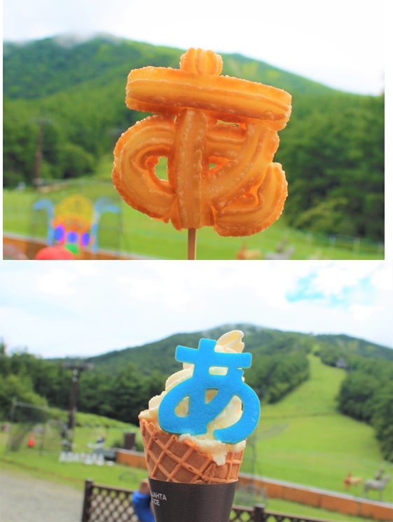 「あ」のオブジェとともに、「あ」をモチーフとした、「あ」のチュロス、「あ」のソフトクリーム、「あ」のかき氷ソフトを発売します。鮮やかな緑の木々や青い空にかざして写真を撮ると、インスタ映え間違いなしです。「あ」だたらやまで「あ」のフードをご賞味ください。