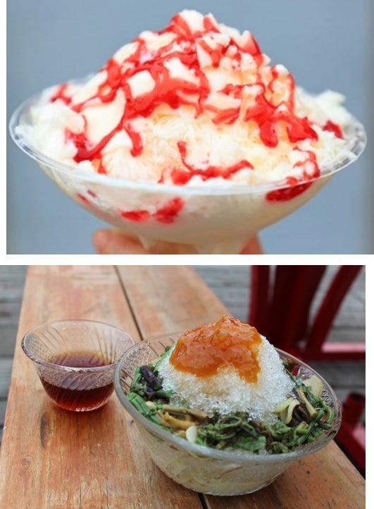 光るかき氷 サイダー味、イチゴ味 600円