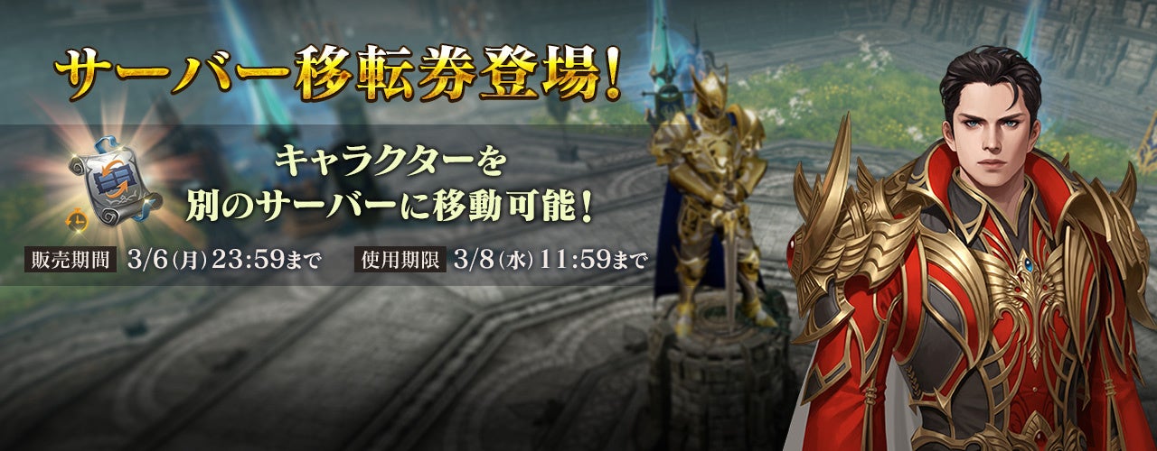 本日より、キャラクターの「サーバー移転券」を期間限定で発売いたします。