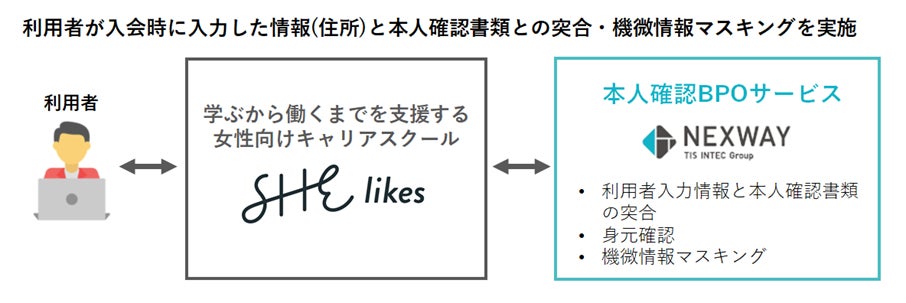TISインテックグループの株式会社ネクスウェイ(本社:東京都江東区、代表取締役社長:坂本 倫史、以下:ネクスウェイ)は、本人確認書類の目視・突合作業・機微情報マスキングに対応する「本人確認BPOサービス」が、SHE株式会社(本社:東京都港区、代表取締役CEO:福田 恵里、以下:SHE)が運営する女性向けキャリアスクール「SHElikes(シーライクス)」に採用されたことをお知らせします。