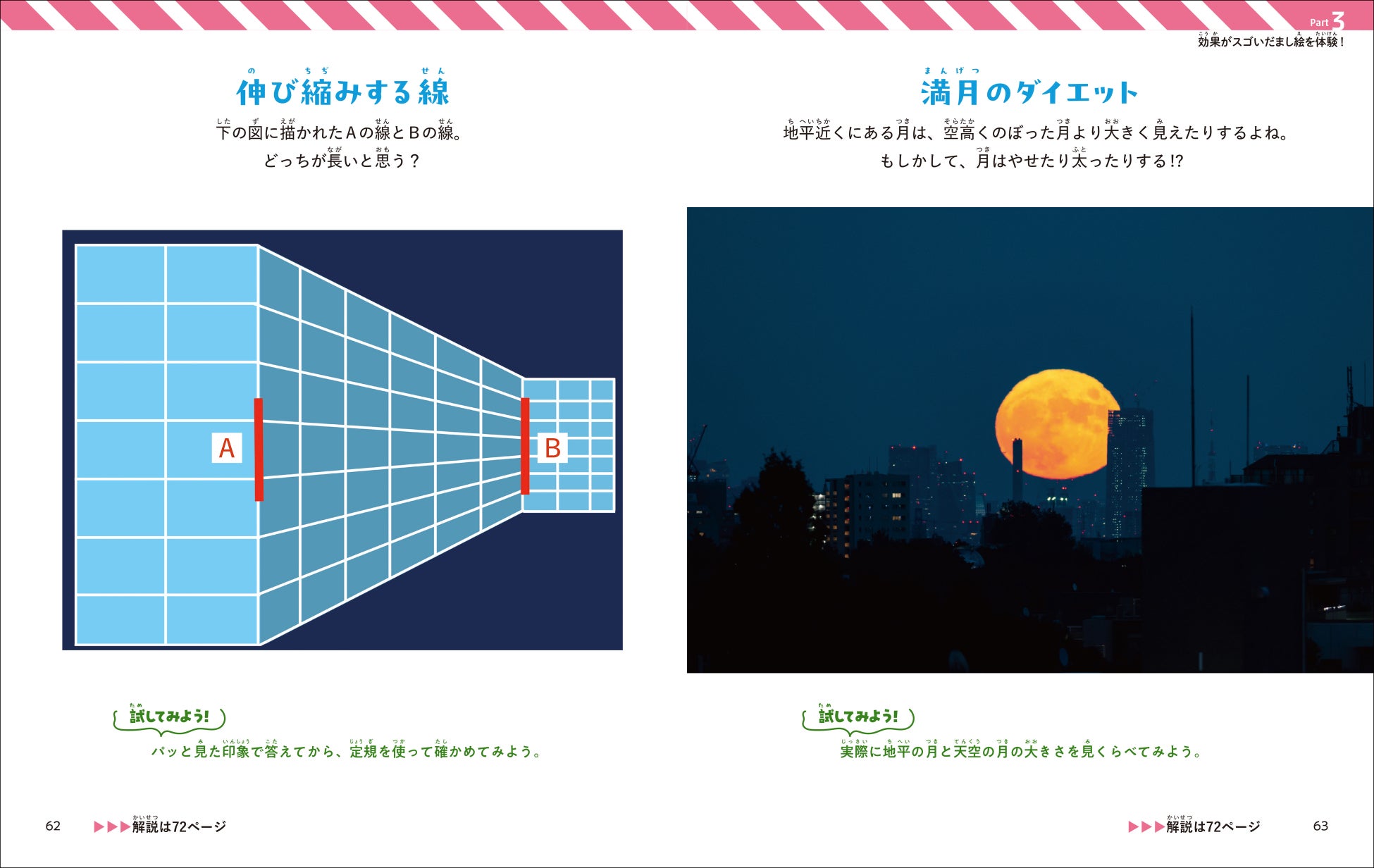 本を遠ざけたり、さかさまにしてみたり、定規で測るなど、いろいろな方法でだまし絵を味わってください。きっとびっくりすることがたくさんあるでしょう。