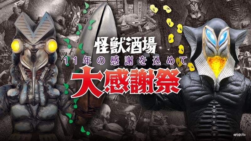 ウルトラ怪獣たちが夜な夜な憂さを晴らし、気力を養って、明日への新たな悪巧みをする場所である怪獣酒場が地球人向けに開放されてから、今年で11周年を迎えます。11年の感謝の気持ちを込めて、怪獣酒場 川崎、新橋蒸溜所の両店で2025年3月24日(月)から4月30日(水)まで「怪獣酒場大感謝祭」を実施いたします。