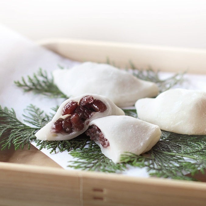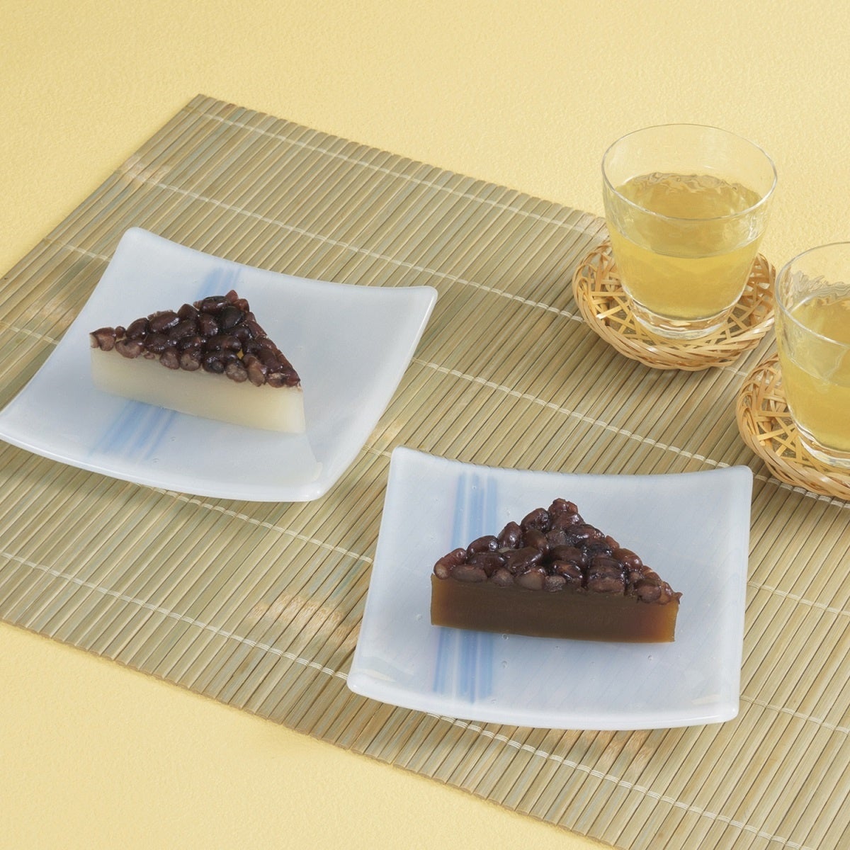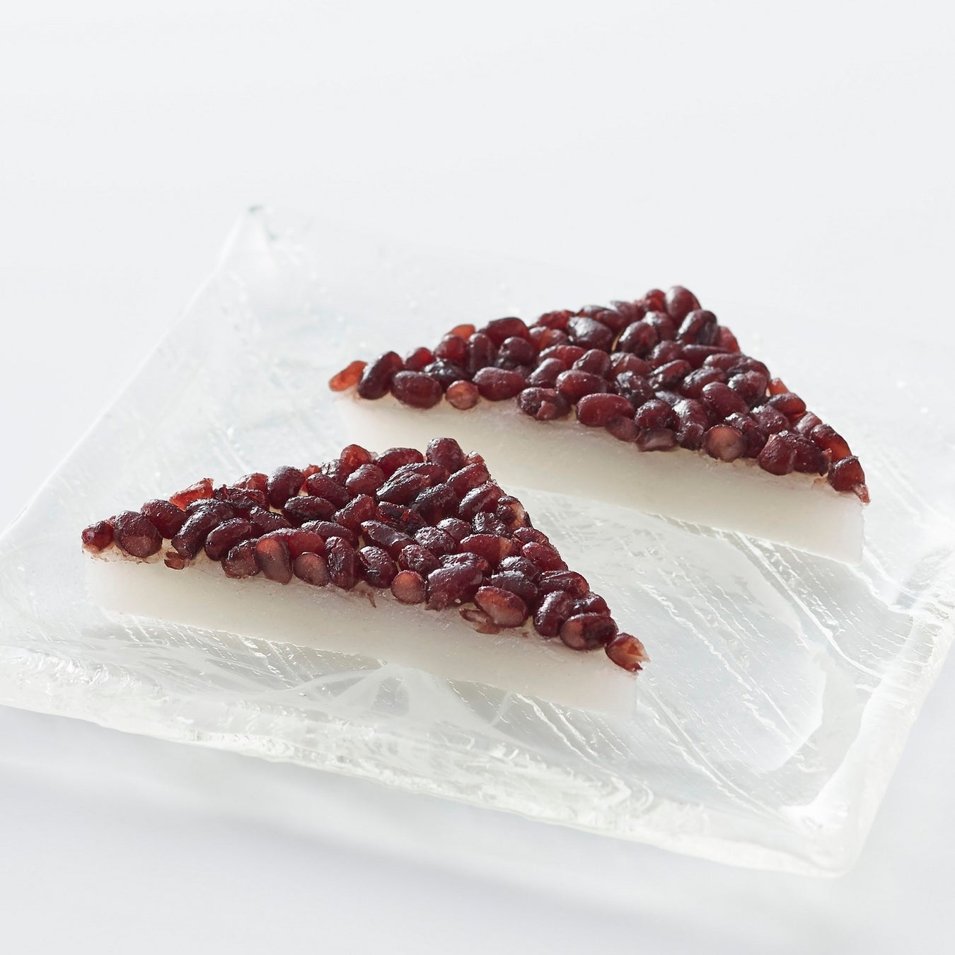 もちもちとしたういろう生地に、邪気を祓う願いを込めて大納言小豆をのせました。