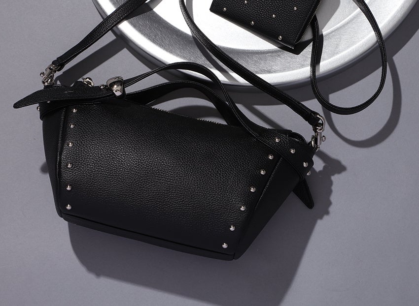 シーンレスに使える横長バッグ「コキーユ」に、スタッズで“芯のある美しさ”をプラス。滑らかなライトシュリンクレザーに映えるシルバーの輝きが、都会的なエレガンスを描き出します。コンパクトに見えて、500mlボトルや長財布もすっきり収納可能。シンプルを極めたデザインだからこそ、光の粒が際立ちます。