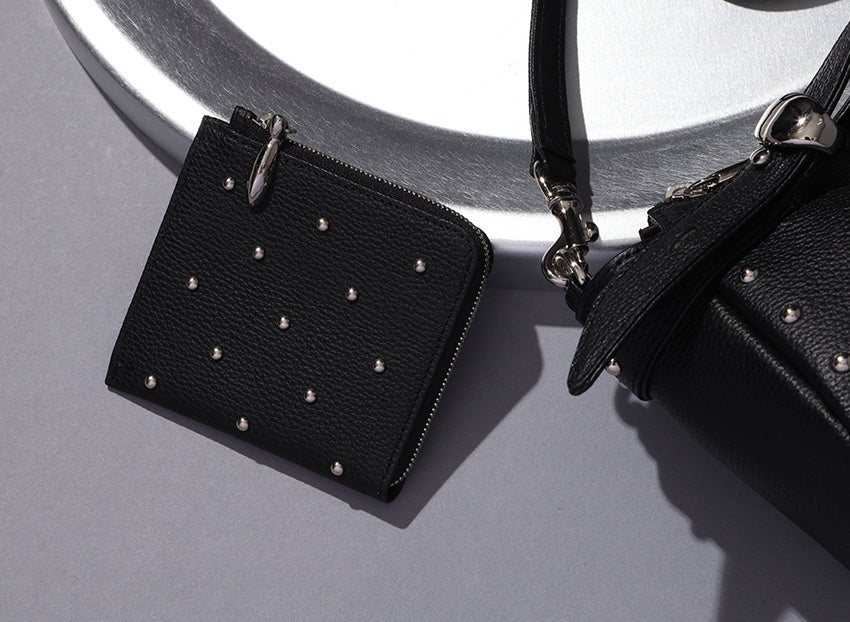 小さくても妥協しない。コンパクトで機能的なL字ジップウォレットが、スタッズをまとって華やかに。ファスナーラインに沿って配されたスタッズが、手元を凛と見せます。ライトシュリンクレザーの柔らかさと、精巧な金具づかいが呼応し、使うたびに高揚感を与える一品。