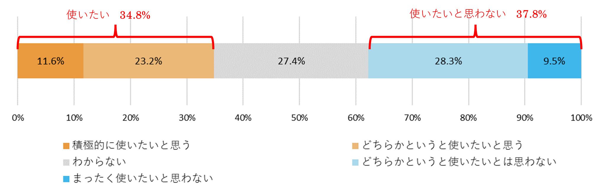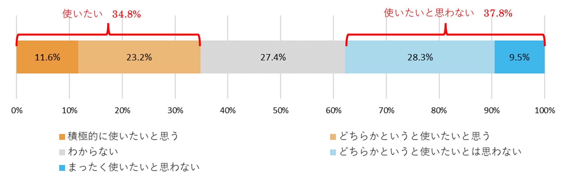 生成系AIによるチャットサービスを就職活動において「使いたい」学生は34.8%、「使いたいと思わない」学生は37.8%と意見が分かれる結果に【図6、7】