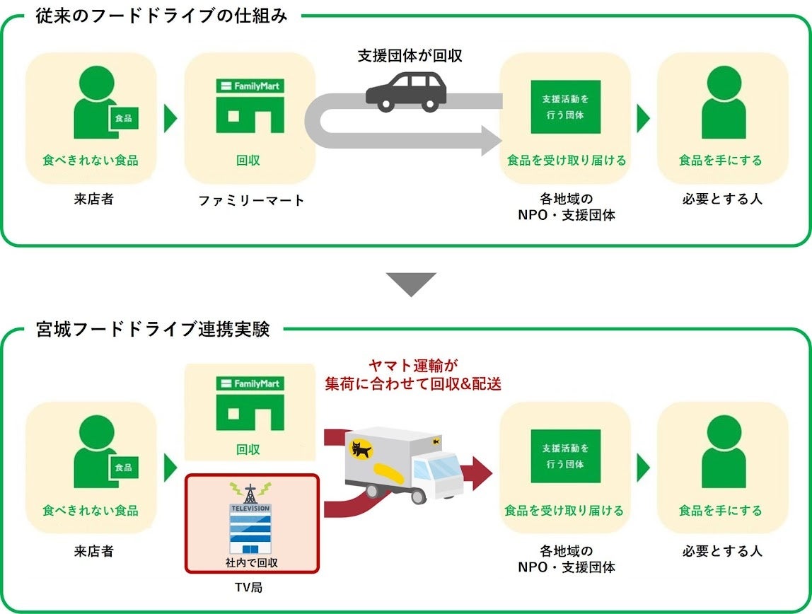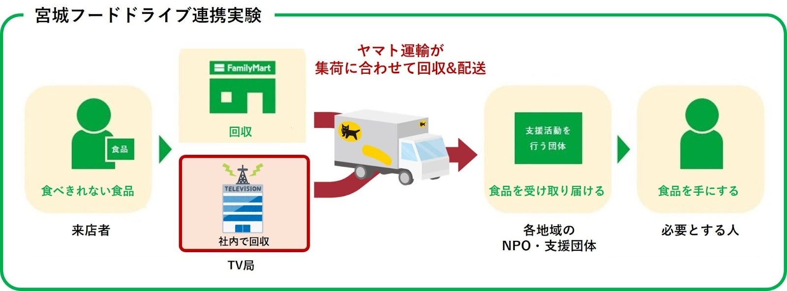 「宮城フードドライブ連携チャレンジ」を開始 ヤマト運輸が集荷に合わせて回収、TV局での食品回収も開始 みんなの力で、食品をもっと素早く、もっと多くの人へ