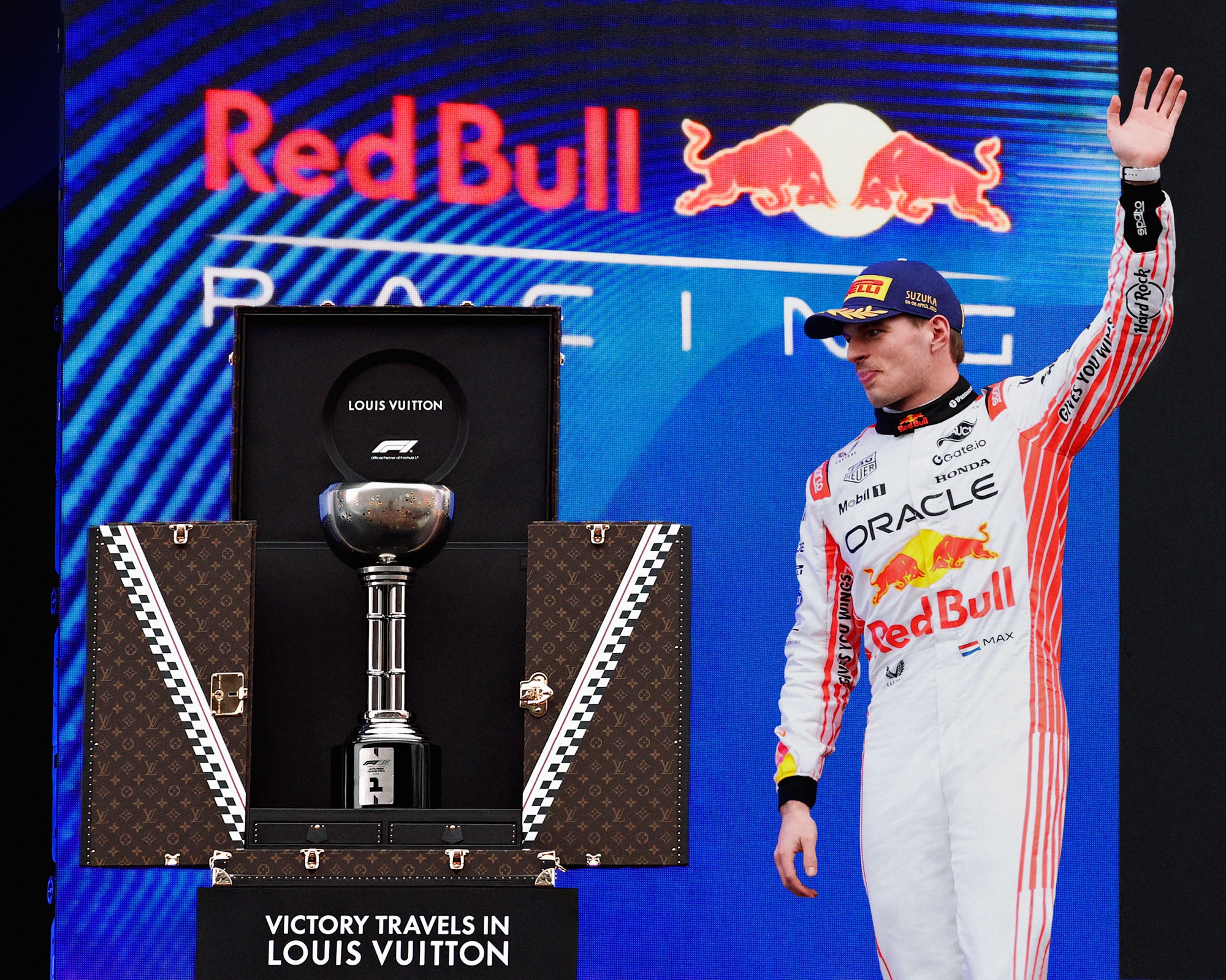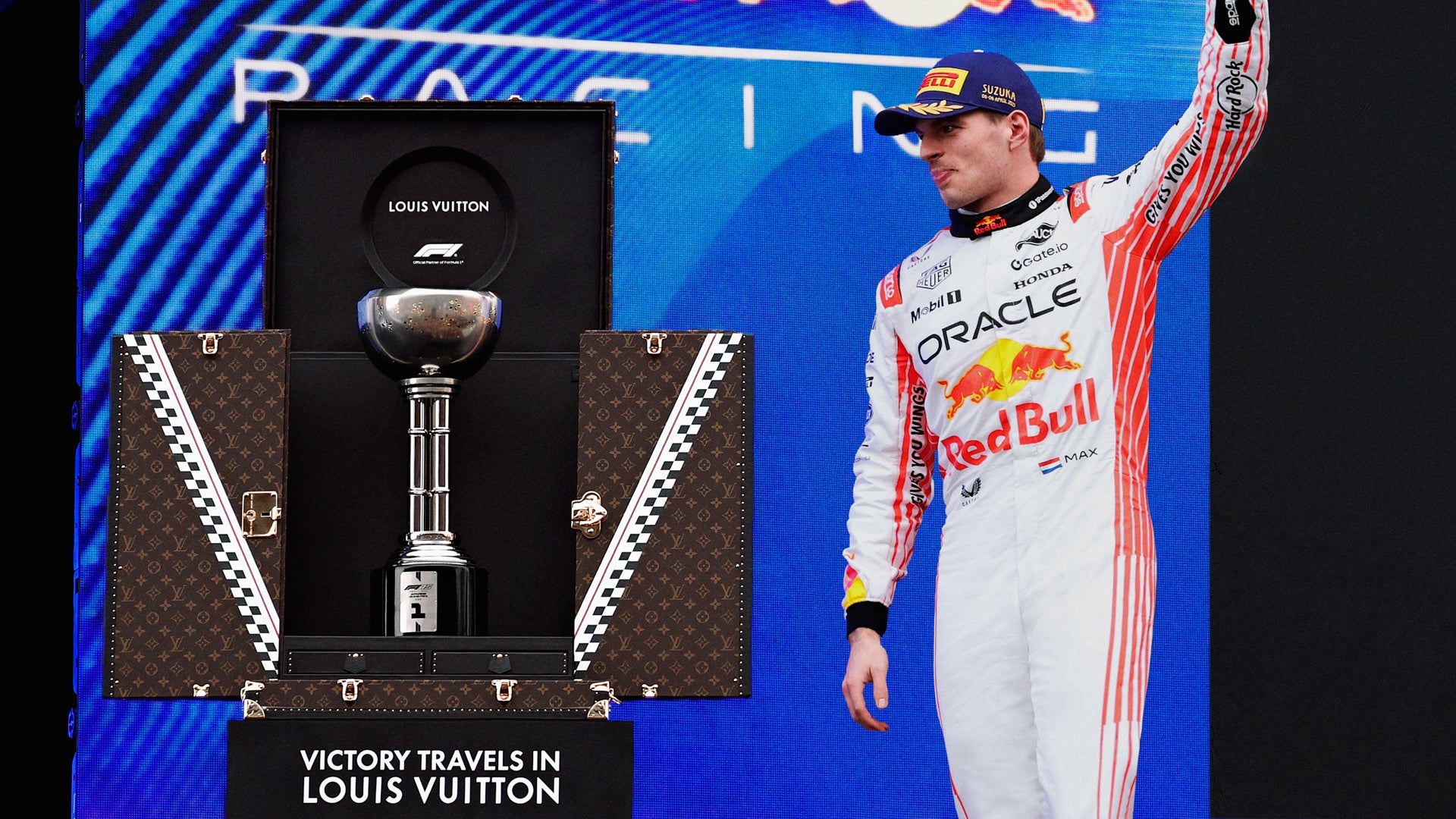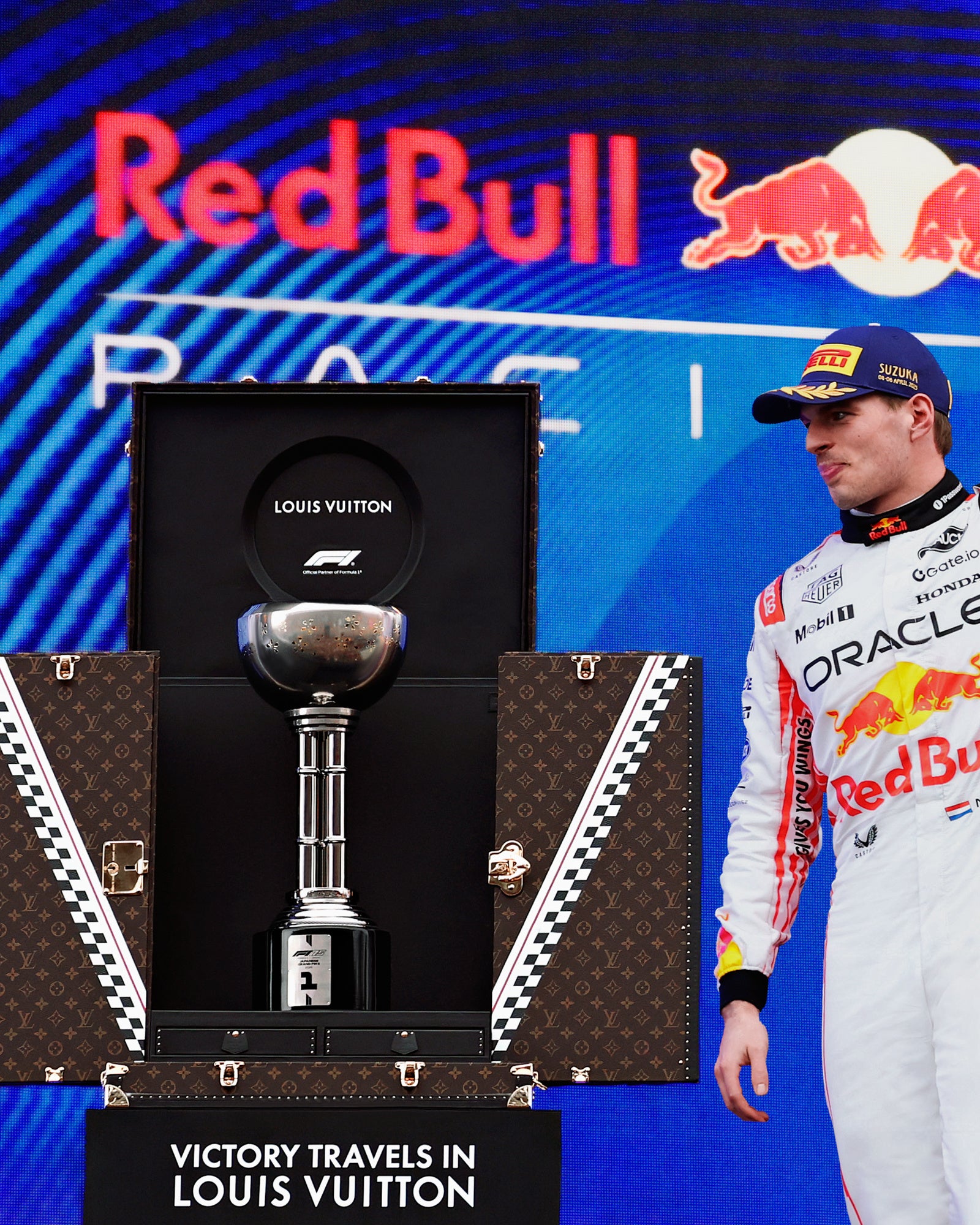【ルイ·ヴィトン】フォーミュラ1® レノボ 日本グランプリ 2025、マックス·フェルスタッペンがルイ·ヴィトン トロフィー·トランクに収められたトロフィーを獲得