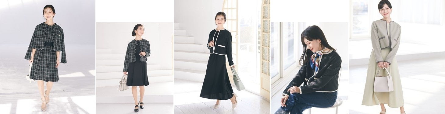 「きちんとしているのに、気分が高まる」好みや着丈で選べるジャケット&ワンピースは、自由な組み合わせでONもOFFも楽しめるのに硬すぎず、トレンドも意識した仕様です。インフルエンサーとして活躍する水野さんだからこその好印象ポイントやスタイルUPへのこだわりを詰め込みました。