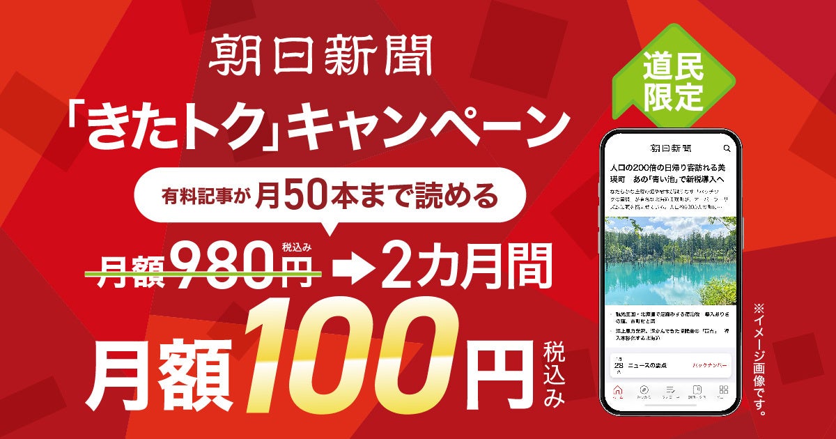 株式会社朝日新聞社(代表取締役社長:角田克)が運営するニュースサイト「朝日新聞」(https://www.asahi.com/ )は2025年2月17日(月)から3月10日(月)まで、北海道在住の方を対象に「きたトク」キャンペーンを実施します。