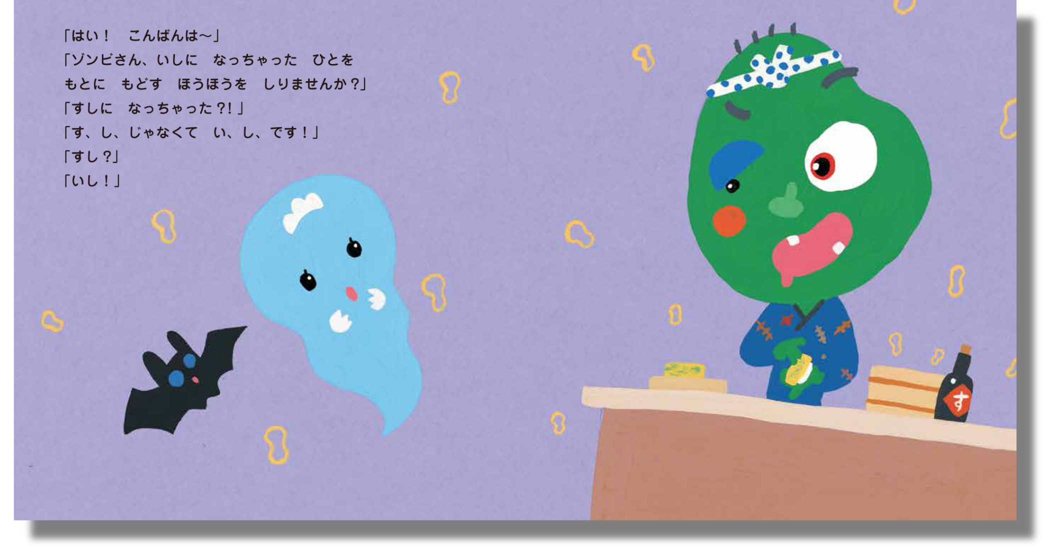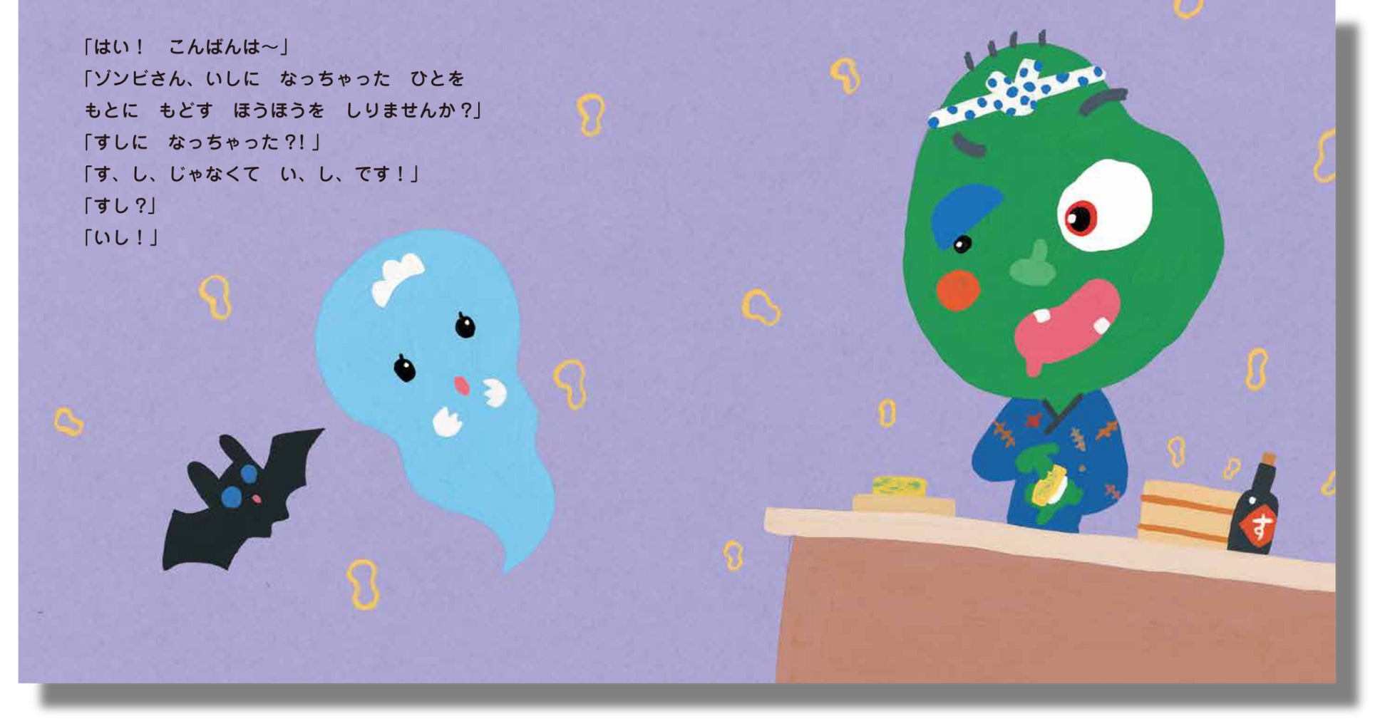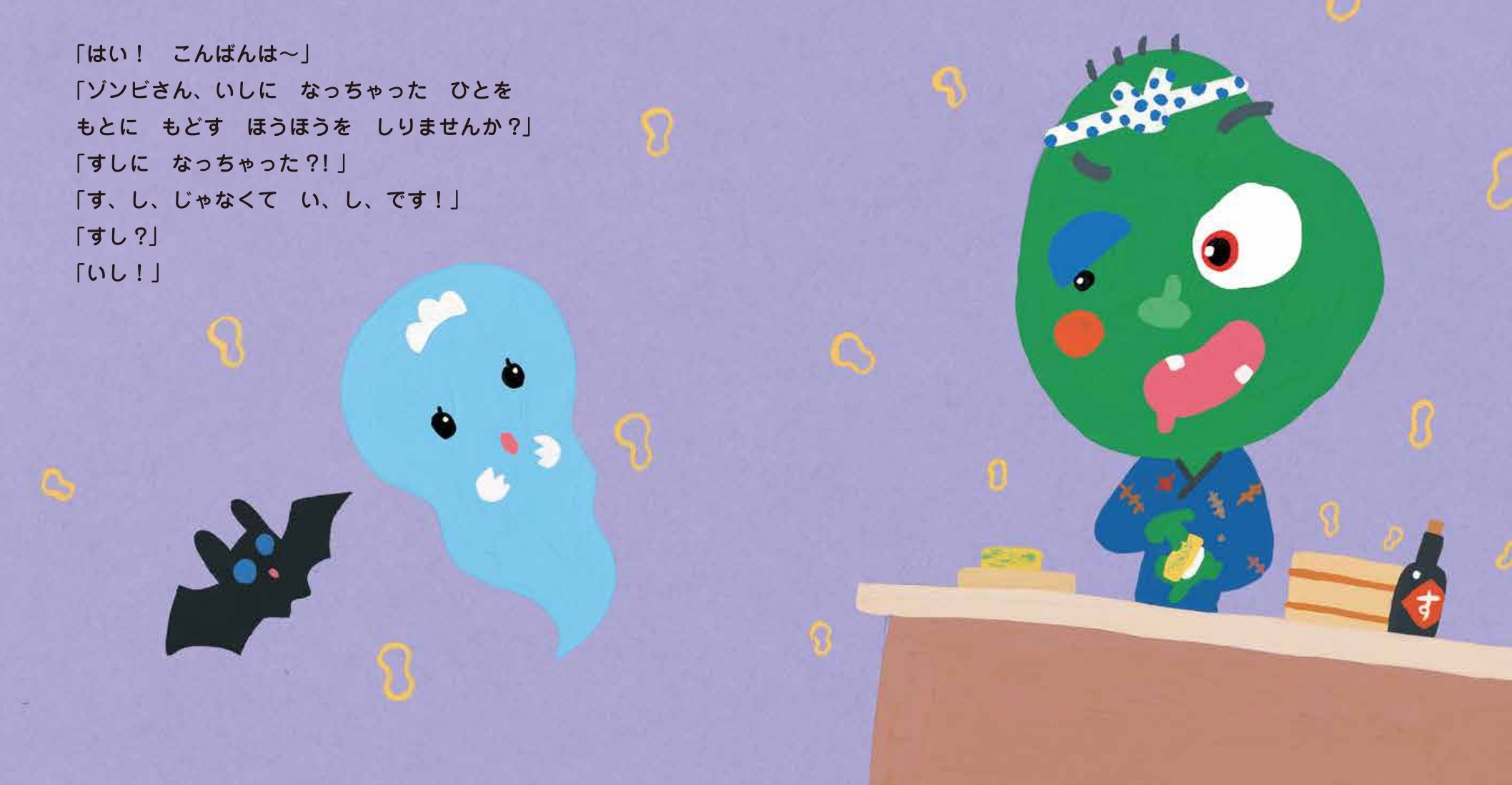 ■ ゾンビの寿司屋で、石の像を助ける方法を聞きますが……。ゾンビは怪しいお寿司ばかりをすすめます。
