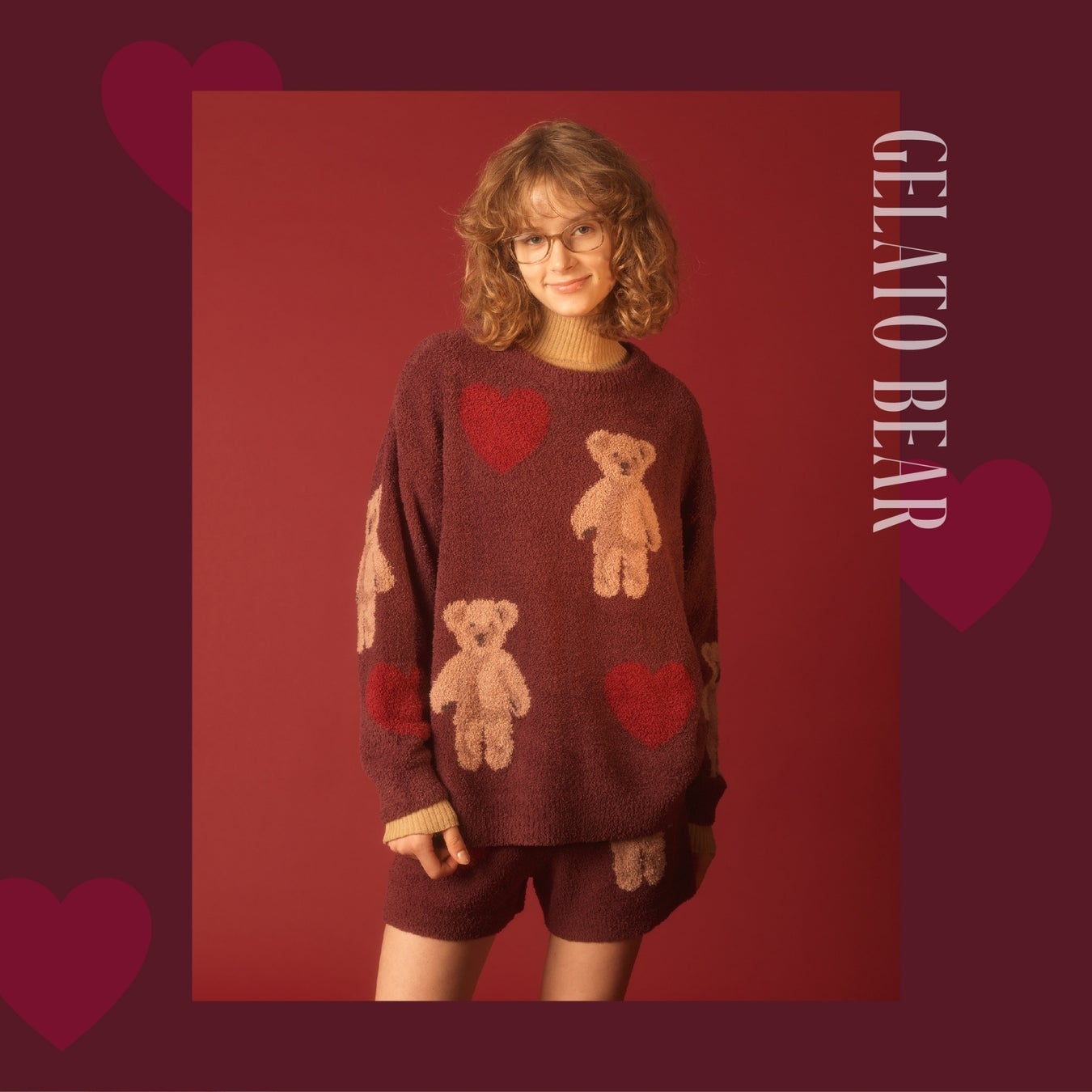 ホリデーベアと真っ赤なハートをジャガード編みした、オンライン限定の総柄ニットを、店頭では唯一となる本リミテッドショップのみで販売いたします。
