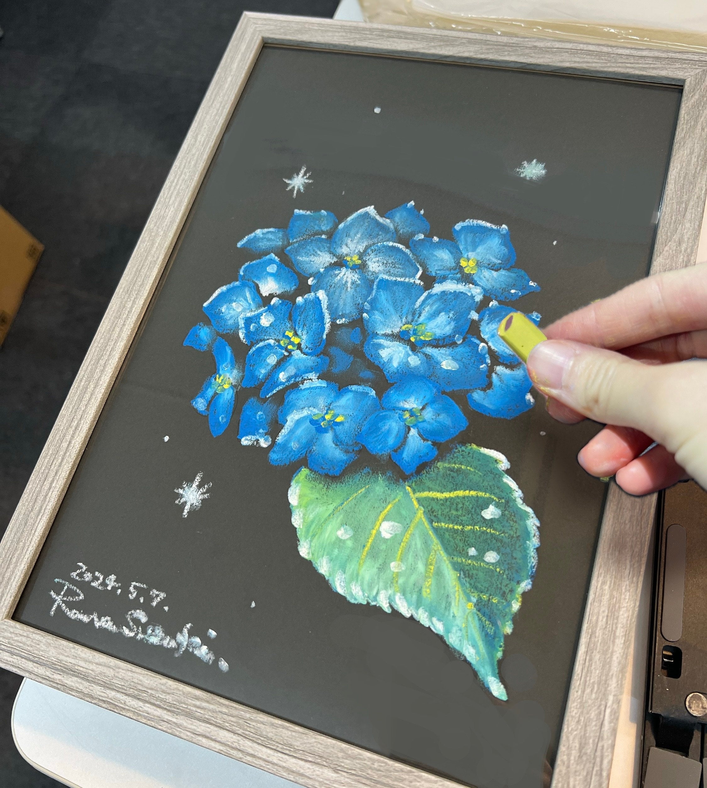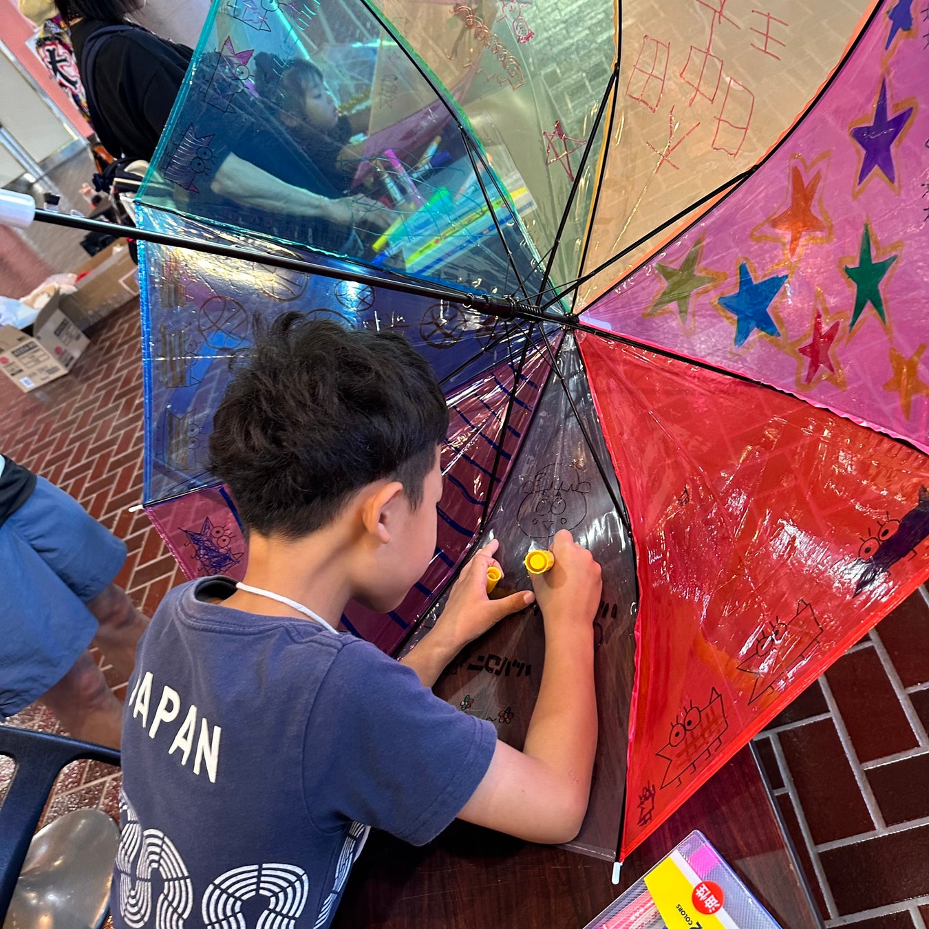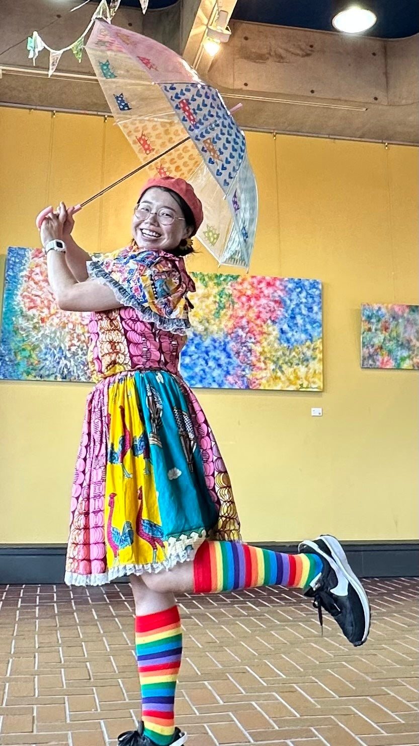 「雨の季節にかかる虹のように、楽しい時間を過ごしていただきたい」と想いを込めて千葉県出身の芸術家・バルサミコヤスさん、黒板アート作家・すずきらなさんとアーティスト計7名によるお絵かきや演奏のワークショップを開催。