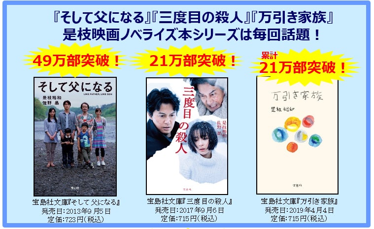 『そして父になる』『三度目の殺人』『万引き家族』・・・是枝映画ノベライズ本シリーズは毎回話題!