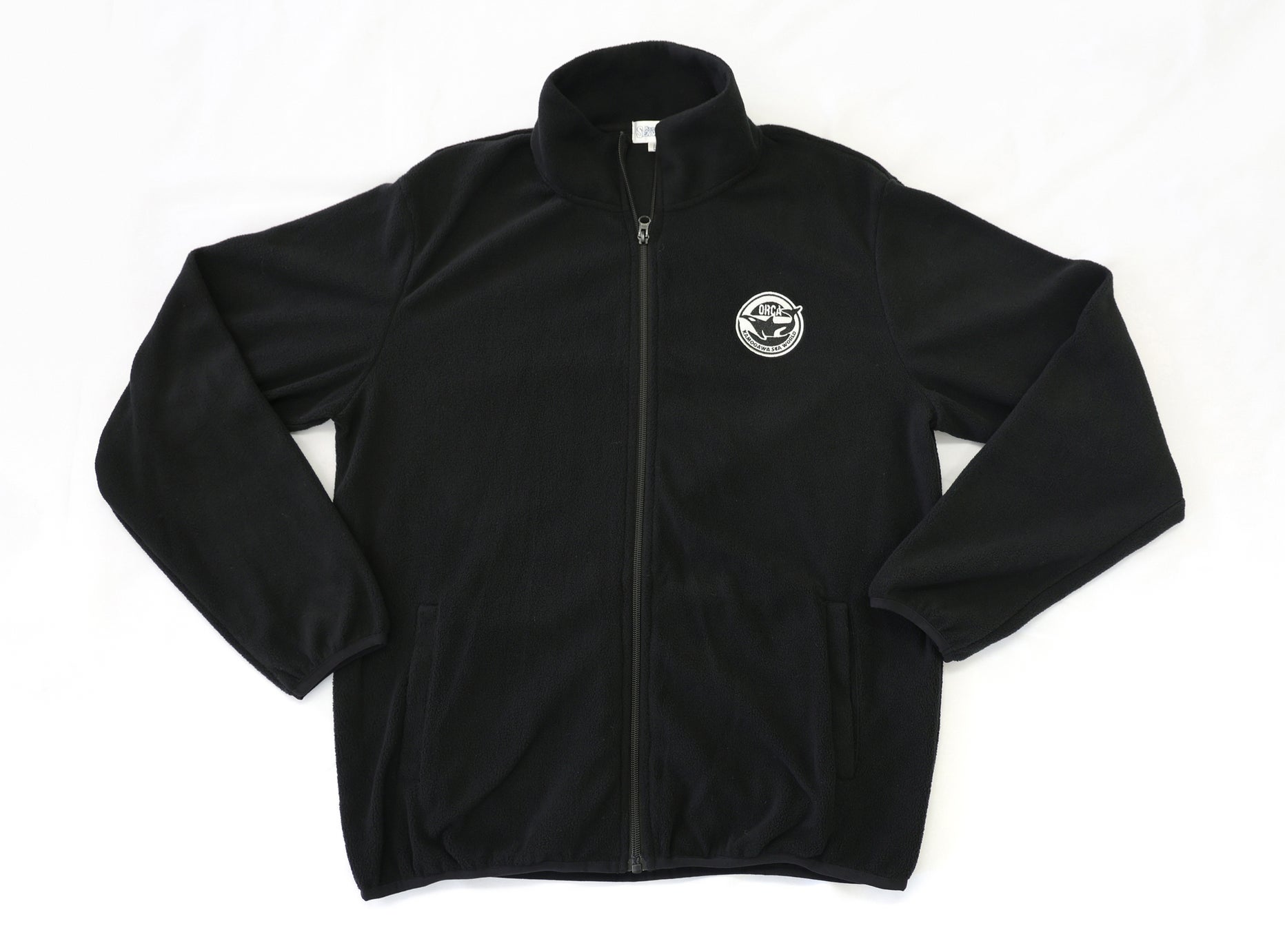 ワンポイント刺繍が入った、軽くて暖かいフリースのフルジップジャケット。薄手で重ね着しやすく、首元まで暖かいハイネック仕様!両サイドポケット付き。