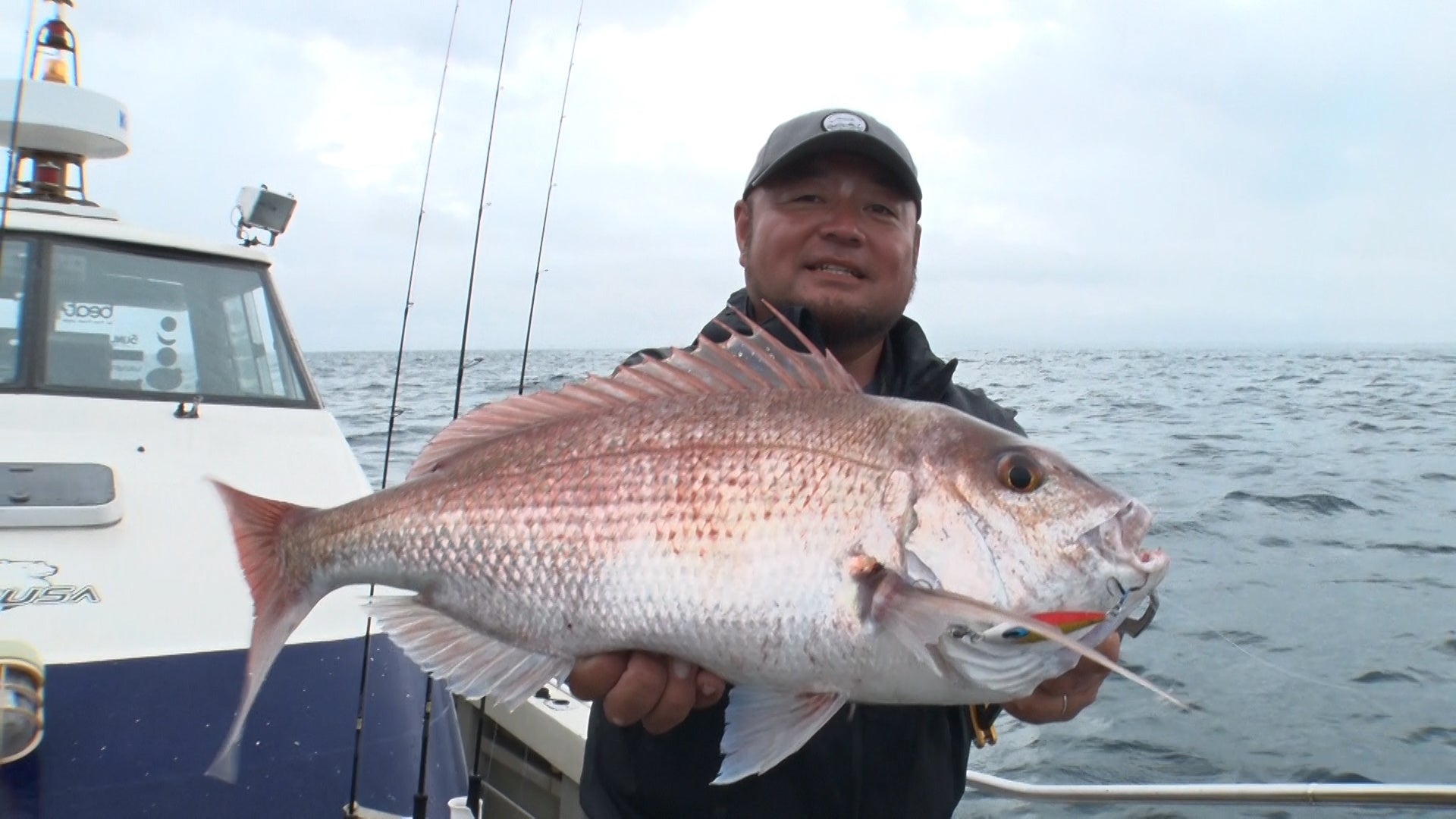 ここで住澤、出船前に言っていた釣法を試してみる。取り出したのは“ワーム”!?専用のジグヘッドにワームをセットし、ジギングスタイルで狙う、名付けて“ワームジギング”。住澤の地元・伊勢湾で最近流行っている新しい釣り方だという。