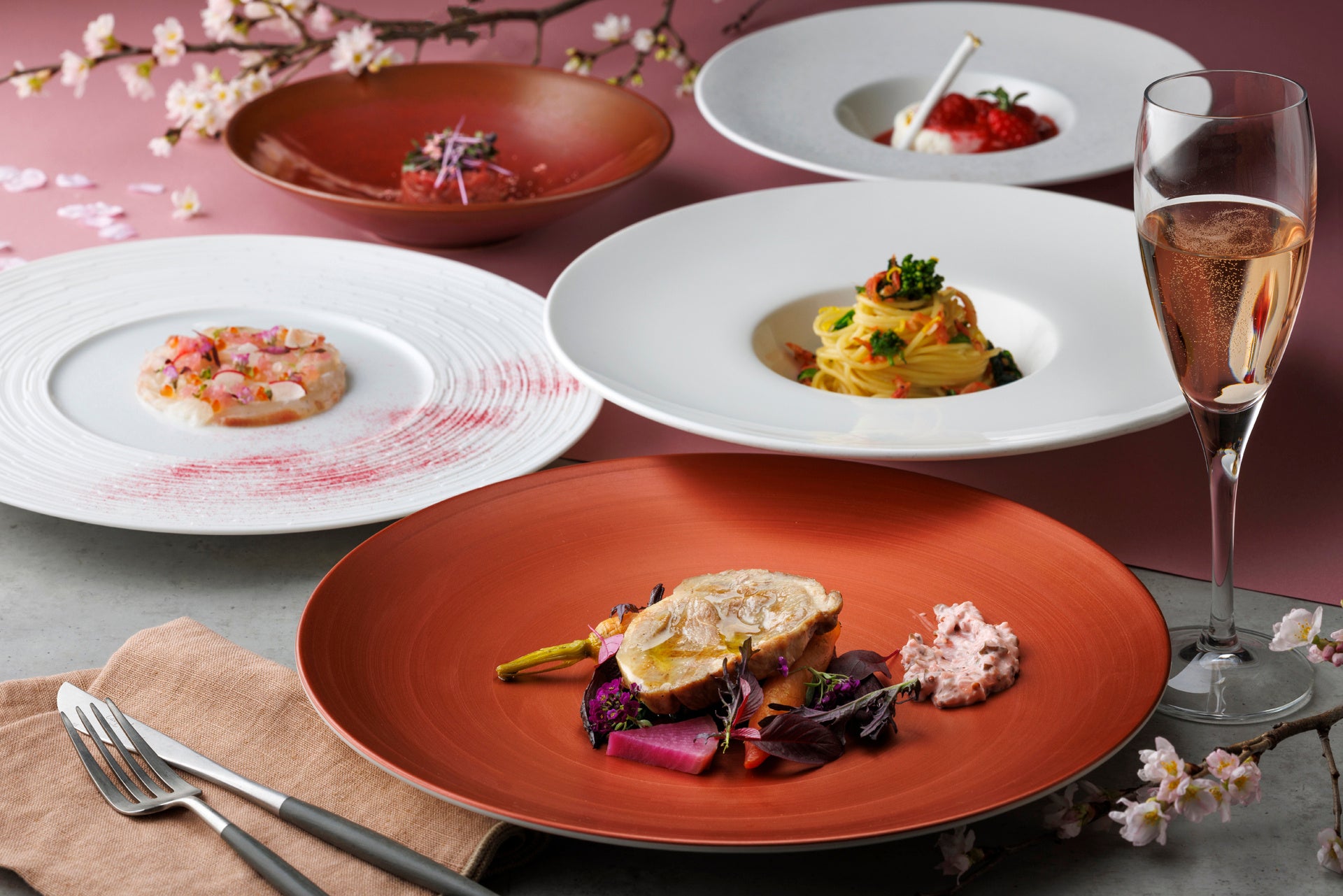 また、2025年3月15日(土)から4月13日(日)までの期間には、桜のイメージで仕上げた桜の季節限定のランチ・ディナーコース「“桜”プラン」を販売。桜色のテーブルクロスやナフキンをご用意し、ランチにはローズヒップティー、ディナーにはロゼスパークリングワインもご提供します。お花見気分でのお食事はもちろん、入学・就職のお祝いの席にもおすすめです。
