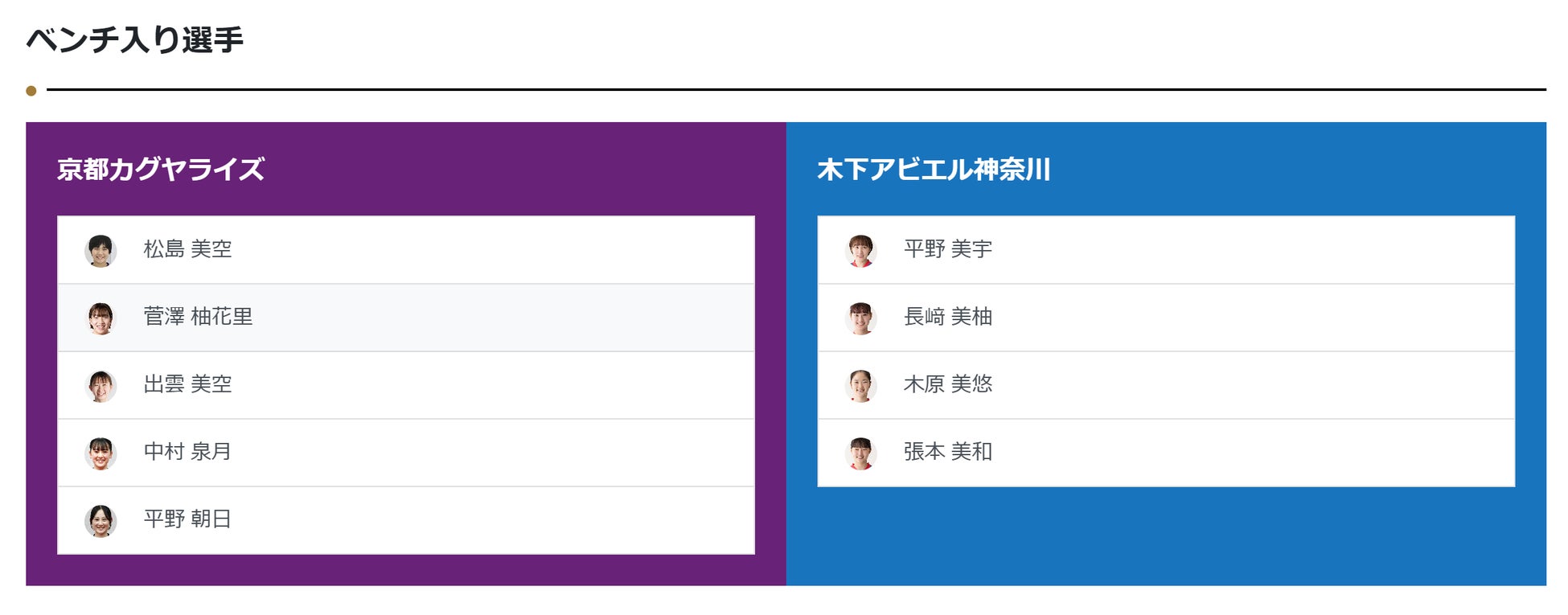 ノジマTリーグ 2024-2025シーズン 公式戦 11月17日開催 京都カグヤライズ vs 木下アビエル神奈川 ベンチ入り選手発表