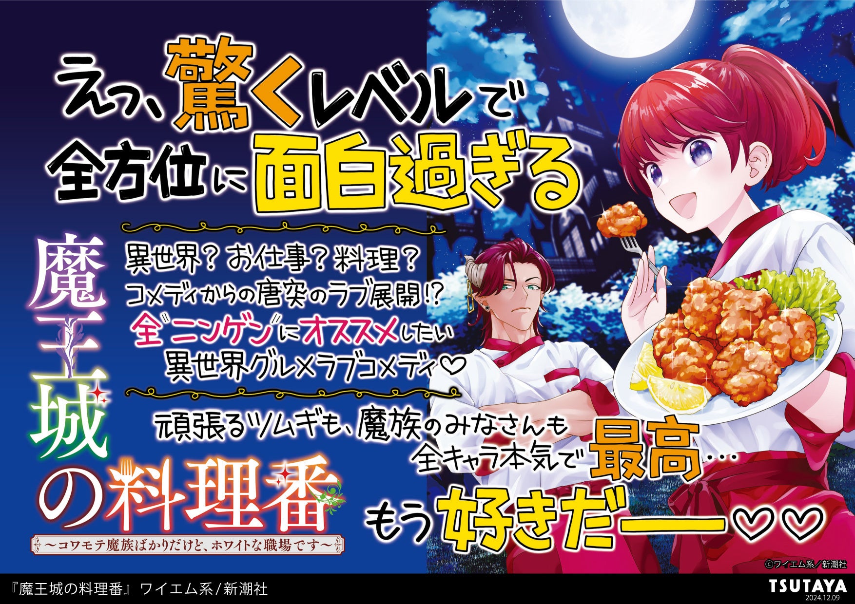 この年末年始により多くのお客様に手に取ってもらいたい作品としてTSUTAYAコミック売場にて展開されるオススメコミックに『魔王城の料理番〜コワモテ魔族ばかりだけど、ホワイトな職場です〜』が選出されました。