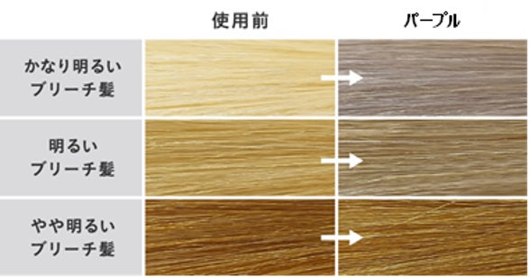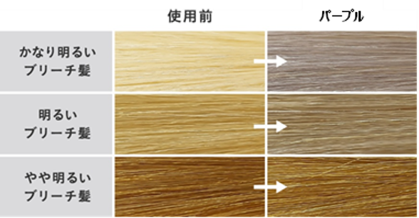 ラインアップは、ブリーチ毛やハイトーンの黄みが気になる方に向けた「パープル」と、ピンクカラーや赤などの暖色系カラーの髪色キープに向けた「ピンク」の2色を展開します。