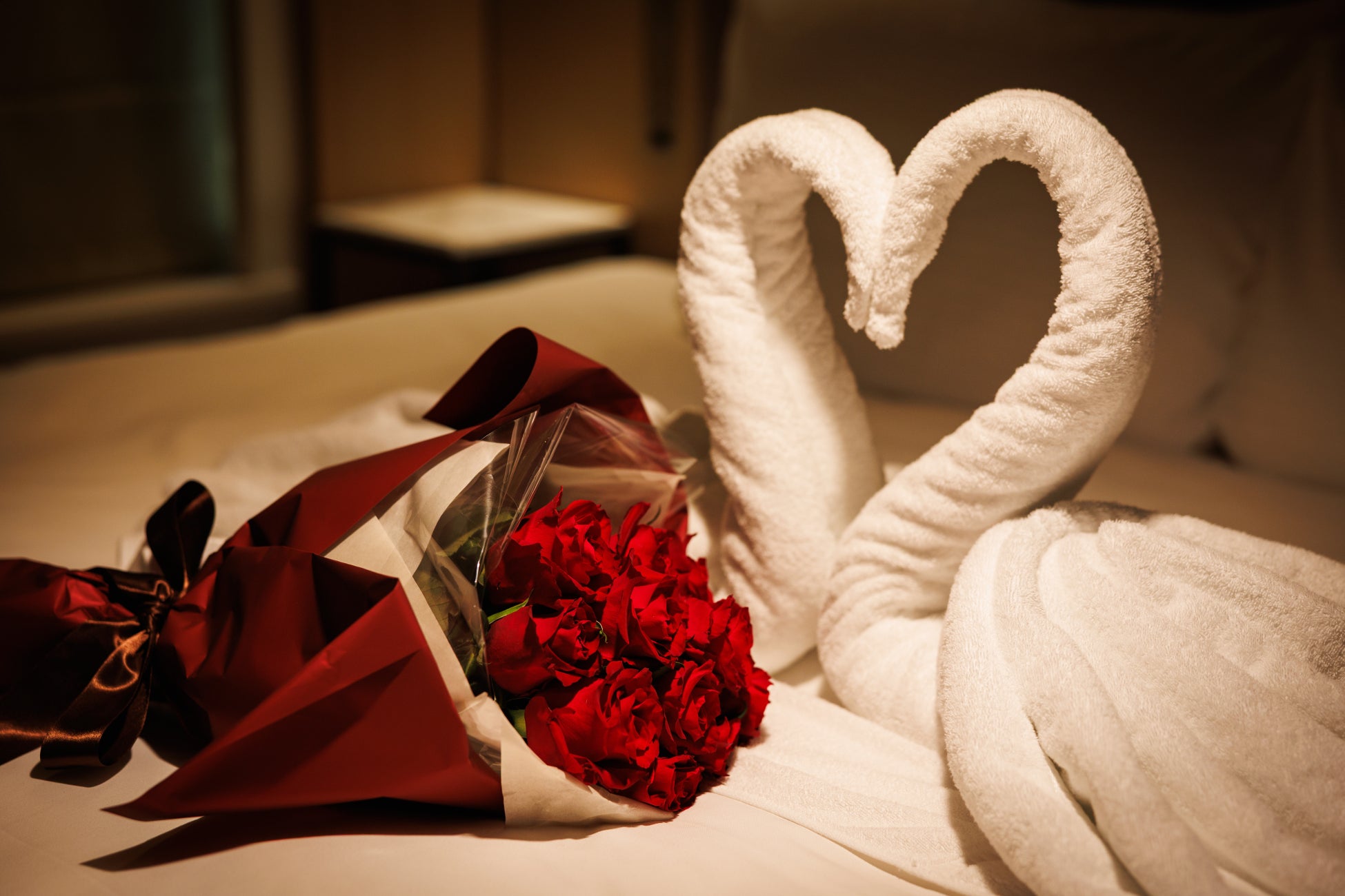 ダズンローズとタオルスワンアートが二人を迎えるロマンチックステイ