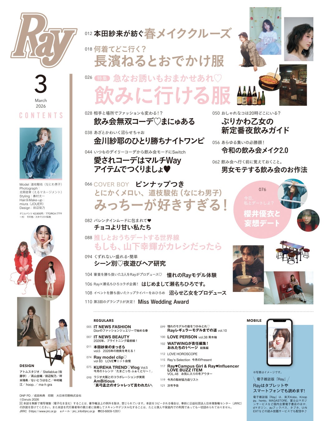 株式会社DONUTS(東京都渋谷区、代表取締役:西村啓成)が編集制作・発行する女性ファッション誌『Ray』は、2026年1月22日(木)に最新号を発売します。