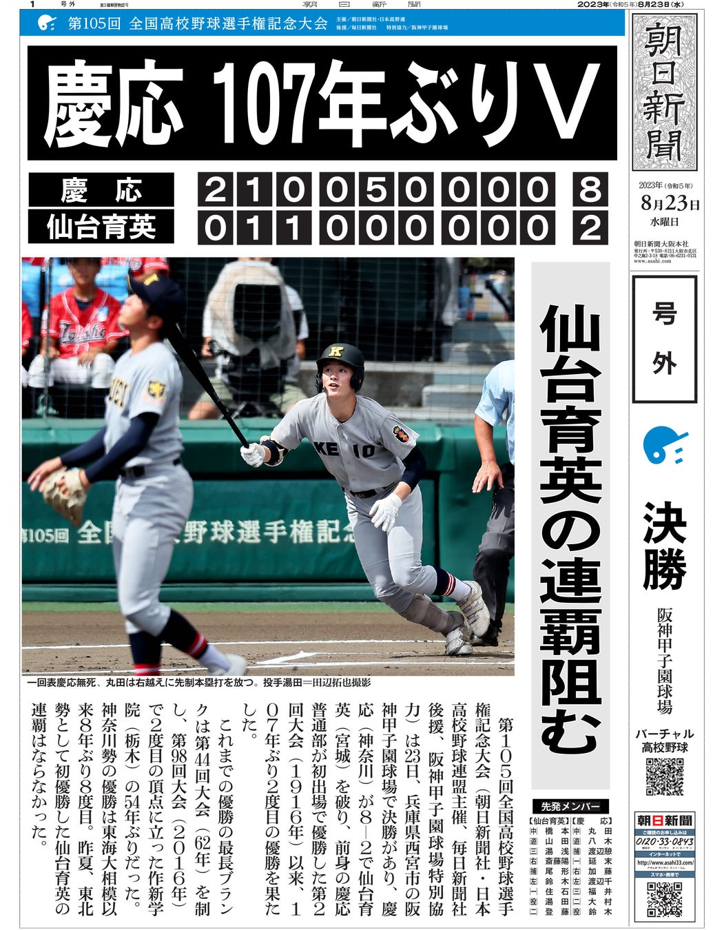 ◇【特別付録】朝日新聞 優勝号外
