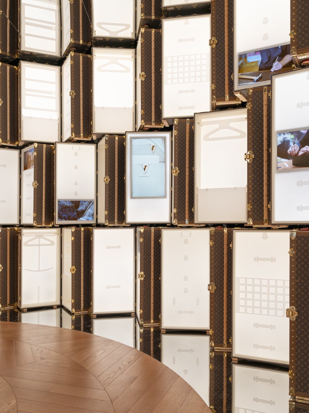 LVMHがスポンサーを務めるフランスパビリオンの中心で、ルイ·ヴィトンは、クラフツマンシップへの愛、そして日本への愛という2つの愛を高らかに宣言します。日本人建築家、重松象平(OMA)の設計によるこの没入型インスタレーションは、ロダンの《カテドラル》を囲むように、84個のワードローブトランクが展示された空間が舞台。メゾンのサヴォアフェール(匠の技)への鮮やかなオマージュとして、1つ1つのトランクが比類なき職人技を表現し、アトリエの個性を再解釈してリズムで表現したフランス国立音響音楽研究所(IRCAM)との共同制作によるオリジナルのサウンドトラックが、臨場感をよりいっそう高めます。2つ目の空間では、真鍋大度が制作した映像作品によって生命を吹き込まれたサウンドスケープや壁を通して、「トランクのスフィア」が訪れる人を幻想的な五感の旅へと誘います。ルイ·ヴィトンが掲げる旅物語をファンタジックに描いた、まさにヘリテージとイノベーションの交差点といった趣の作品です。