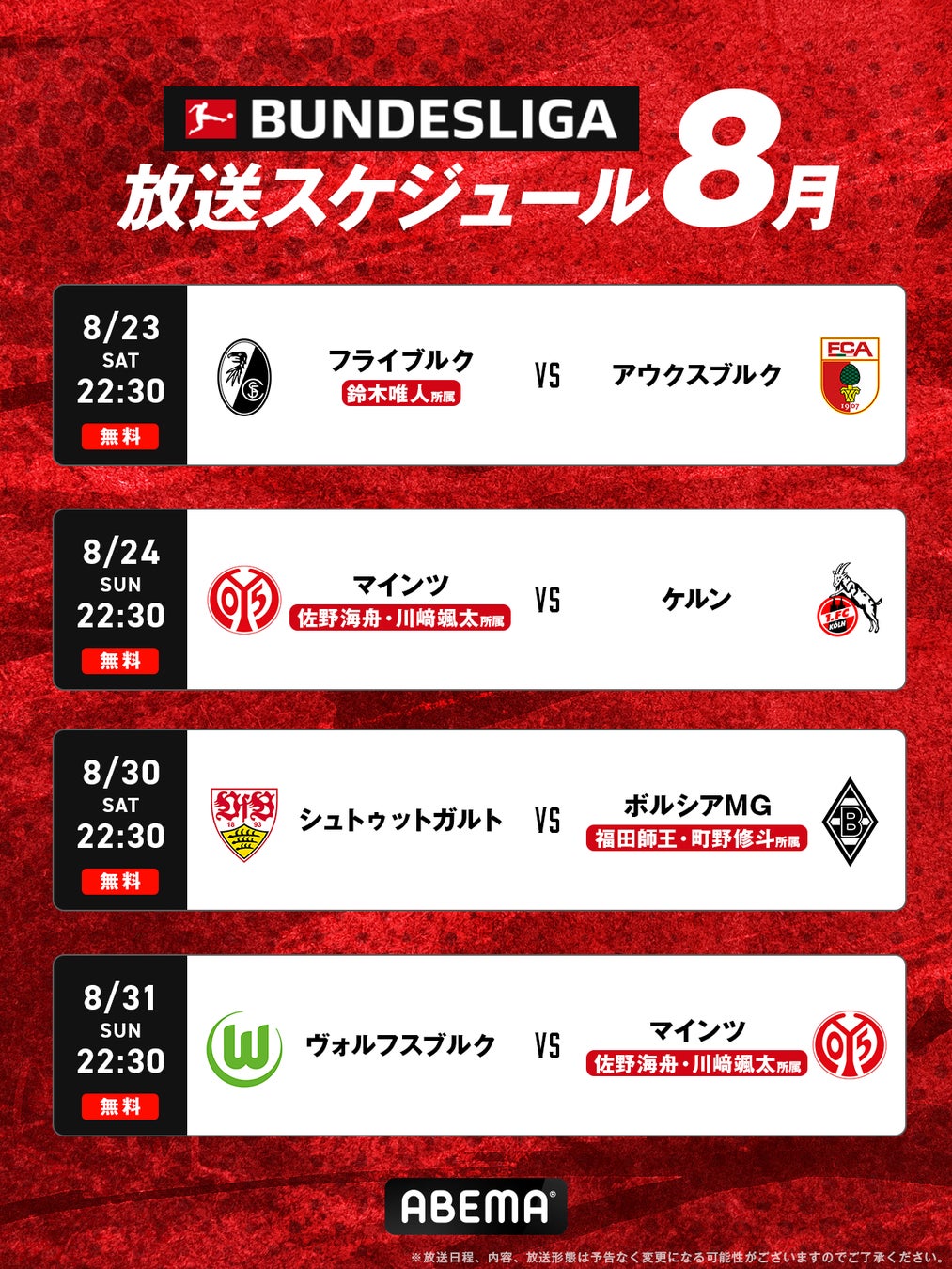 放送URL:https://abema.tv/video/genre/sports/soccer/bundesliga