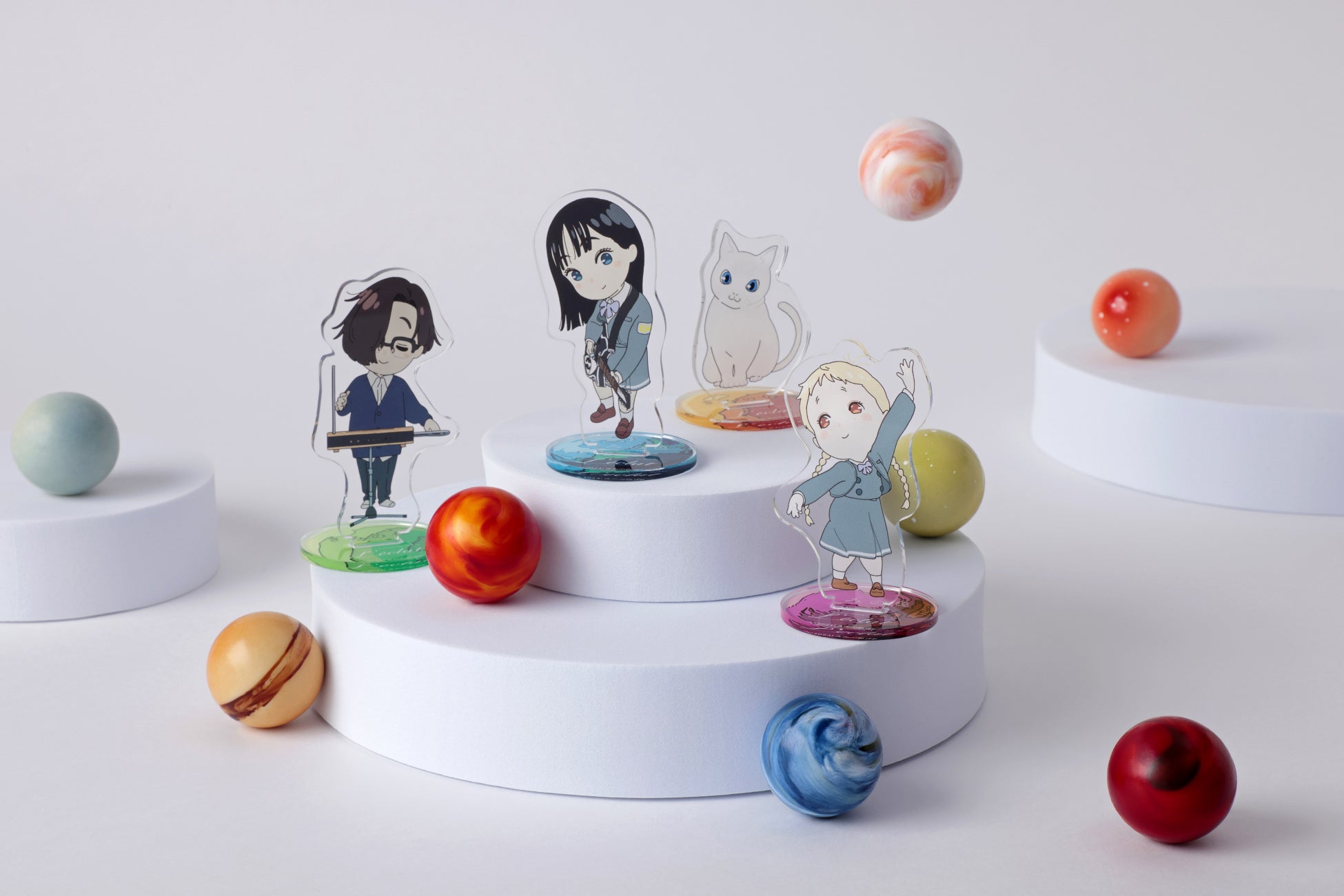 今回、映画『きみの色』の劇中歌「水金地火木土天アーメン」と親和性が高いショコラであることからコラボレーションが実現。「水金地火木土天アーメン」をモチーフにしたコラボレーションパッケージだけでなく、「ショコラブティック レクラ」オリジナルのしろねこ堂メンバーのアクリルスタンドが付いた「惑星ショコラ」が誕生しました。