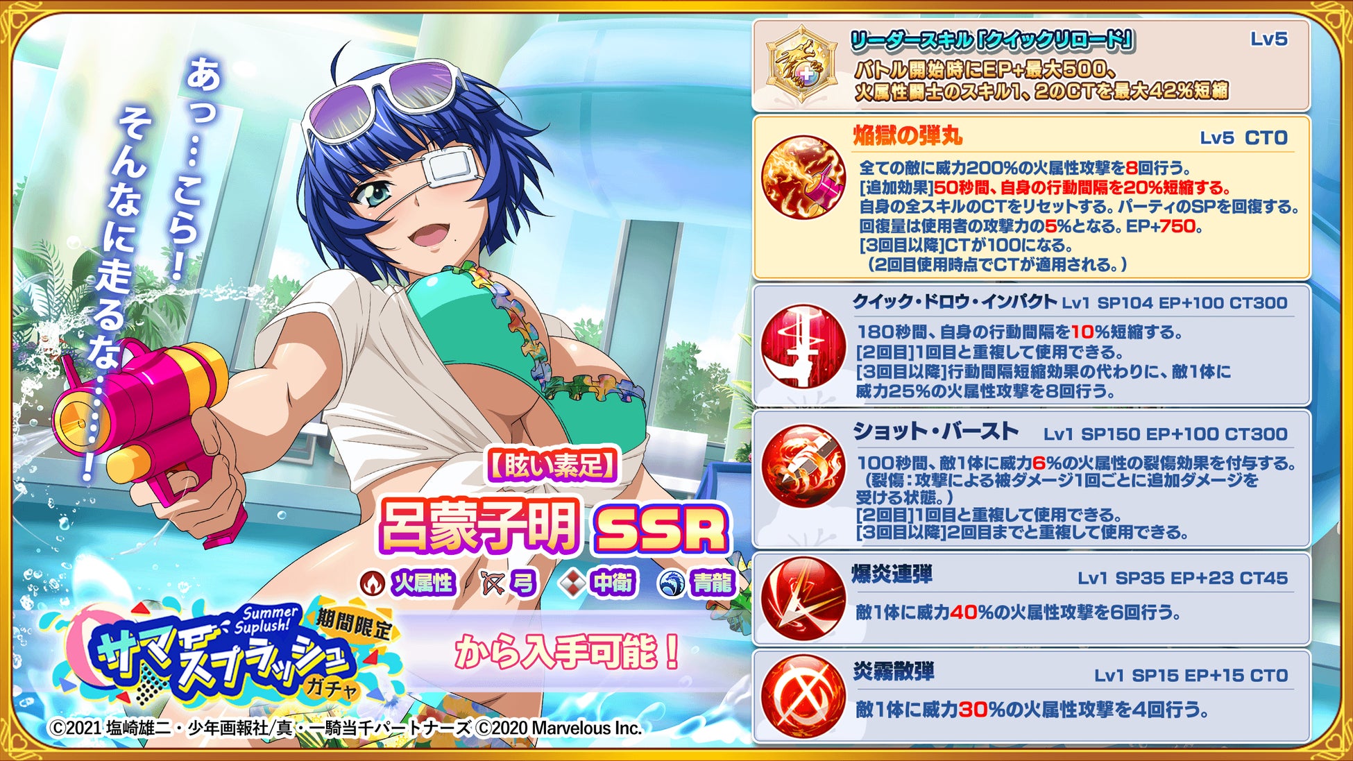 本日開始の「サマースプラッシュガチャVol.1」では、新たに「【眩い素足】呂蒙子明」(CV:甲斐田 裕子)が登場!