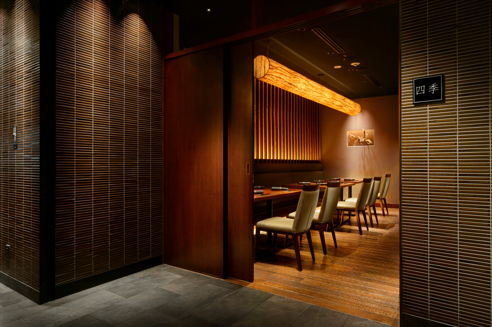 食材がもつ旨みをいかした炙り・炭火&鉄板焼き料理をご用意しています。躍動感のある炙り&鉄板焼きカウンターでは料理ライブならではの迫力を、広々と開放感のあるダイニングスペースでは、ゆったりとおくつろぎいただけます。職場の打ち上げや送別会、親しい方とのランチやディナーなど、シーンに合わせて最適なおもてなしができる客席は、カウンター席からゆったりとくつろげるホール席、12名様までご利用いただける個室もご用意しております。