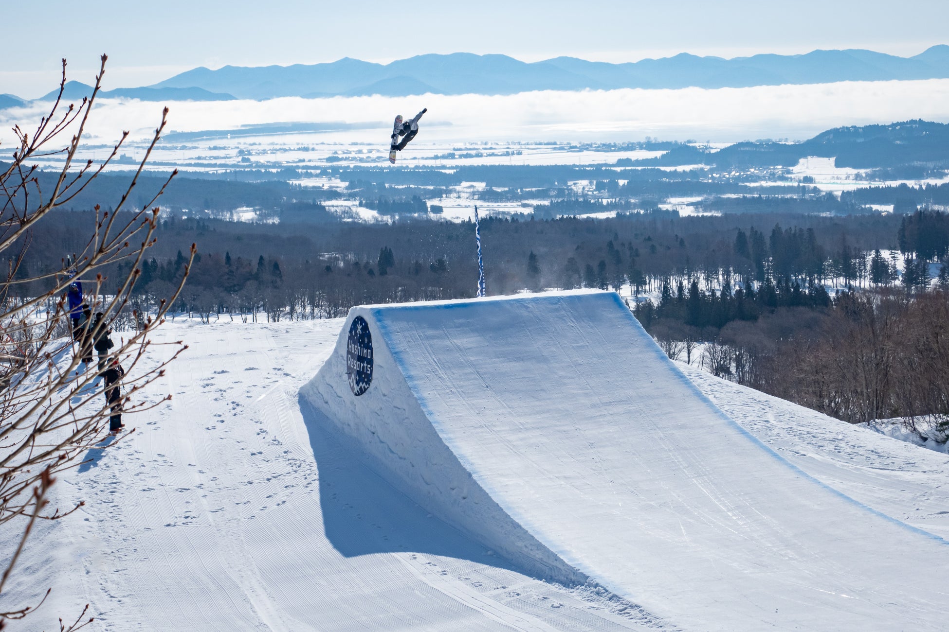 南北に広がる壮大なフィールドをもつスキー場「星野リゾート ネコマ マウンテン」は、2026年2月26日*に公益財団法人全日本スキー連盟が主催する「第32回全日本スキー選手権大会 スノーボード競技ビッグエア」を初めて開催します。若手の登竜門から真の日本一決定戦へと進化をとげる本大会には、スノーボード日本代表のトップ選手も複数名参戦予定です。世界で活躍する選手たちの要求に応えるべく、国内屈指の技術を持つネコマ マウンテンのチームが特設ジャンプコースを造成し、国内最高峰の戦いをサポートします。