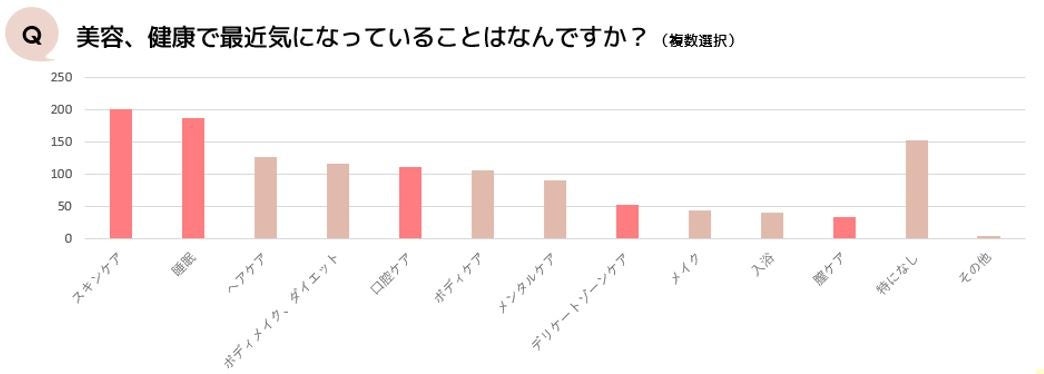 A. 1位 スキンケア/2位 睡眠/3位 ヘアケア/4位 ボディメイク、ダイエット/5位 口腔ケア