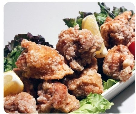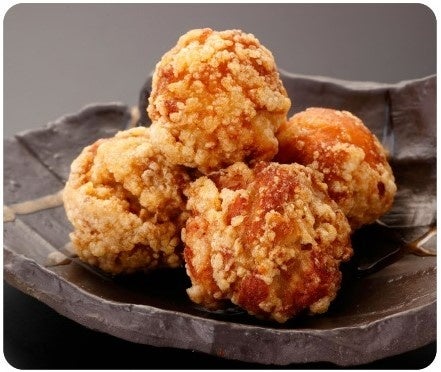 タレには神戸の老舗蔵「池本醤油」の醤油とニンニク、 生姜、そしてたっぷりのすりおろしリンゴを使用。1カ月熟成させたタレをモモ肉に揉み込み、パリッと薄い衣で揚げたお店一番人気の味をご用意。