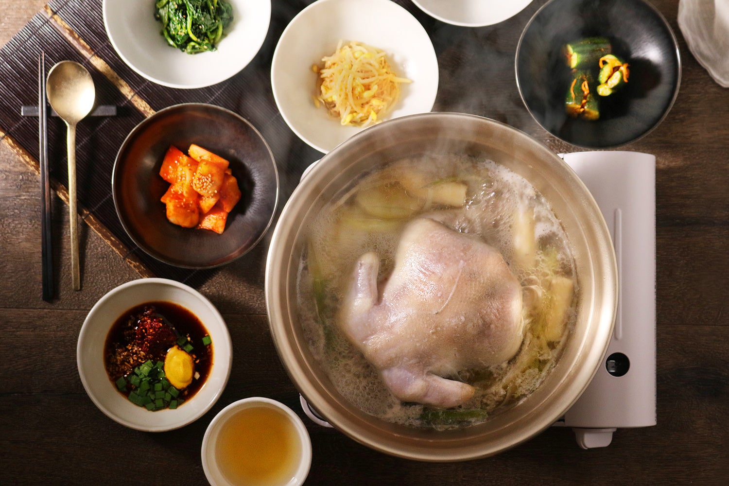 韓国ソウルの東大門が発祥といわれる、丸ごとやぶつ切りにした鶏肉と各種野菜でつくる鍋料理です。