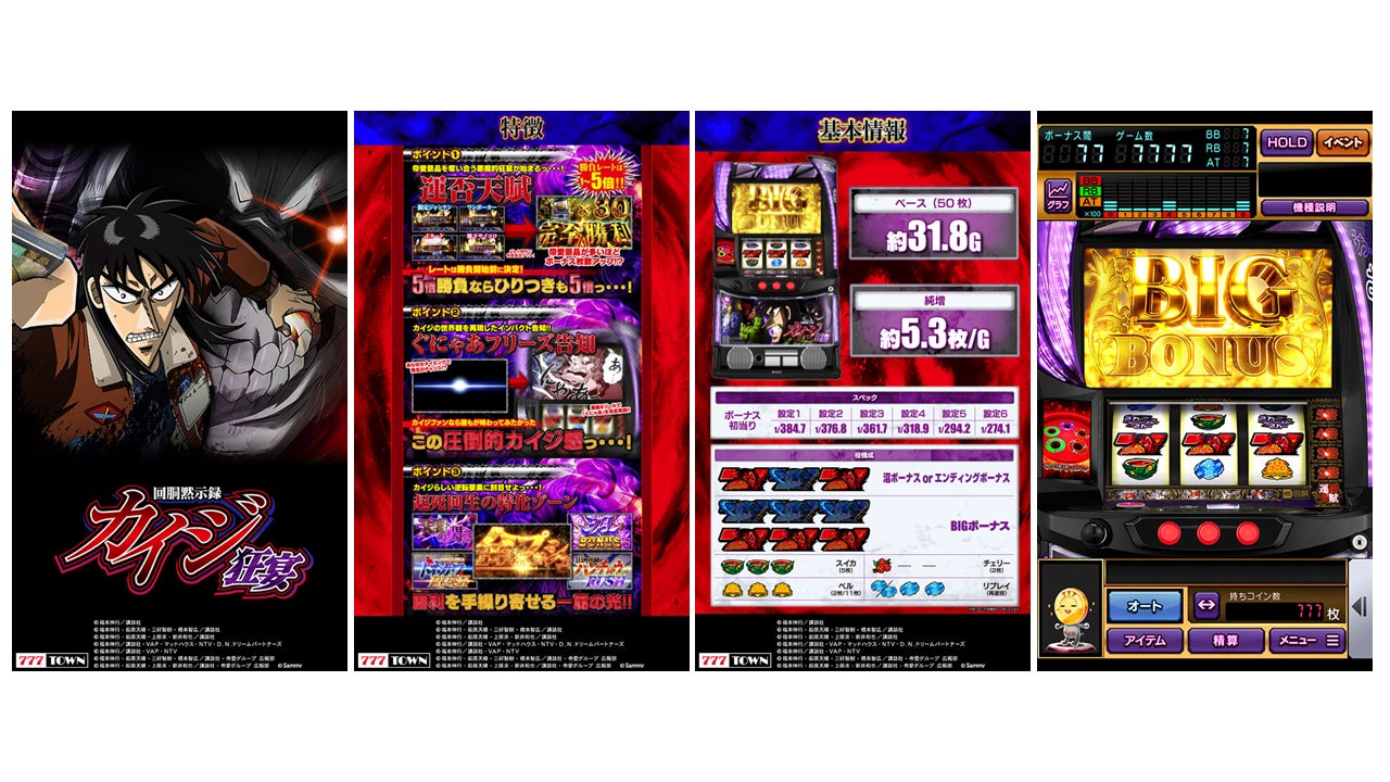 「777TOWN mobile」(スリーセブンタウンモバイル)は2025年5月13日(火)より、サミー株式会社の「回胴黙示録カイジ 狂宴」アプリを配信いたします。