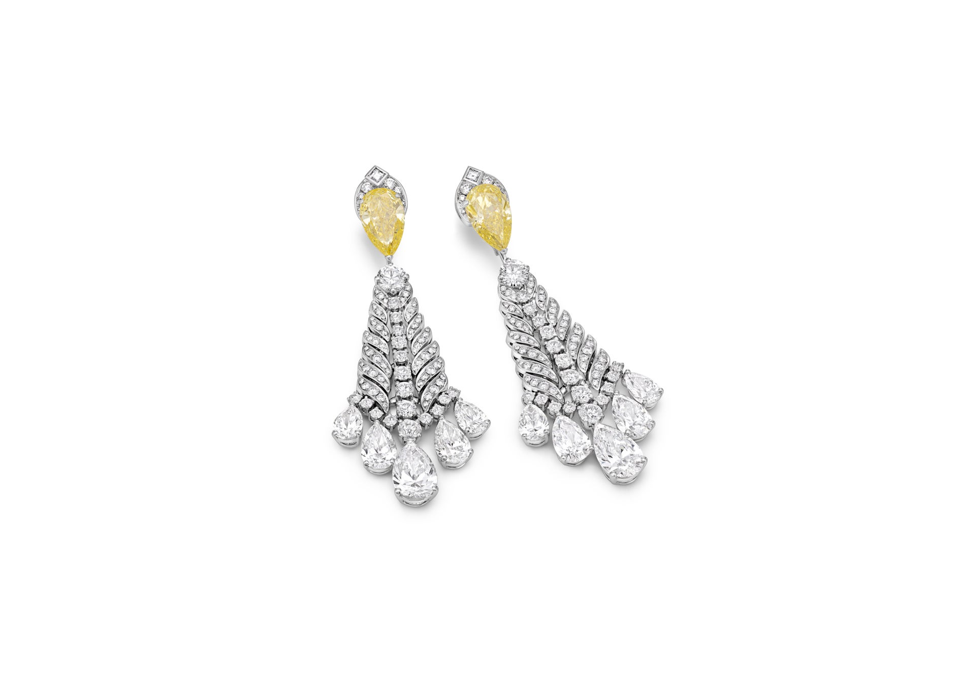 ネックレスに合わせたイヤリングは、ファンシー インテンス イエローダイヤモンドとホワイトダイヤモンドをあしらい、取り外しが可能で、スタッズピアスとしても着用できます。