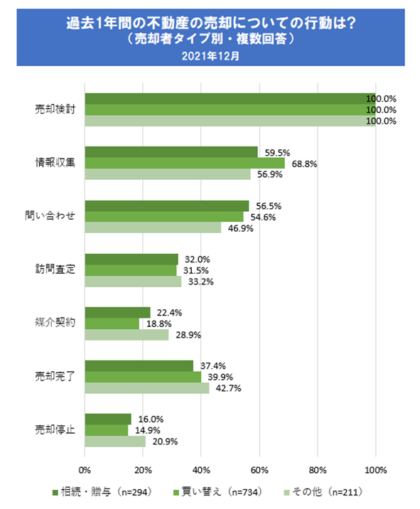 過去1年以内に居住用不動産の売却を主体的に検討し、以下いずれかの行動をした方。