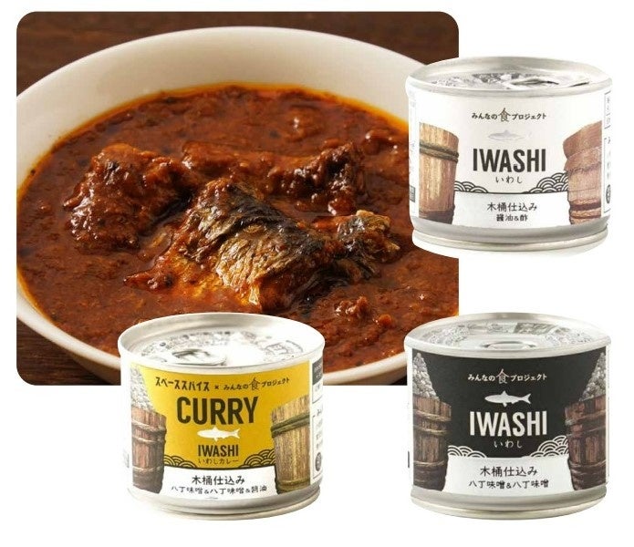 千葉県銚子沖のイワシを使用。醤油と酢のまろやかな 味わいの“醤油&酢缶”、八丁味噌2種類で仕込んだ “味噌缶”、八丁味噌と醤油にカレーを合わせた“味噌 醤油カレー缶”、3つの味わい。