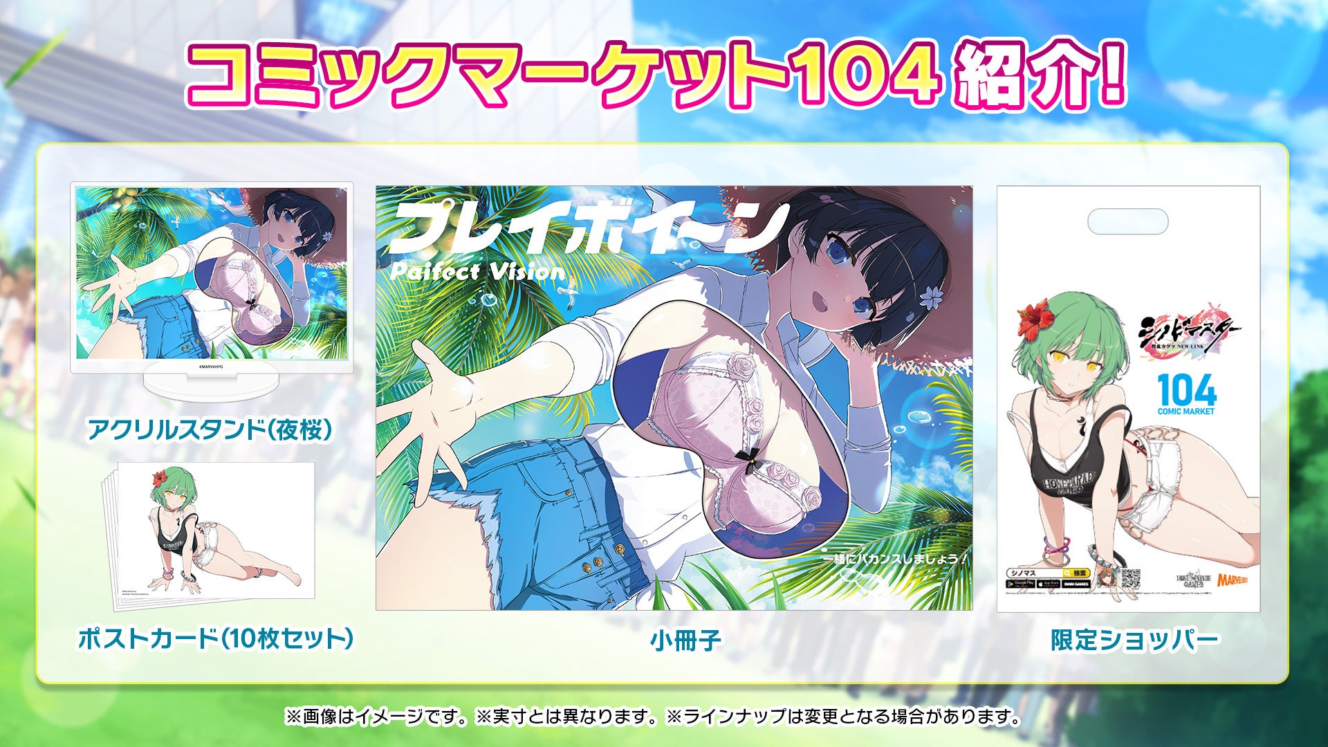また「コミックマーケット104」への出展を記念し、シノマスのアプリではメインビジュアルに描かれている日影のイラスト衣装「フェスタパイソン」をプレゼントいたします!