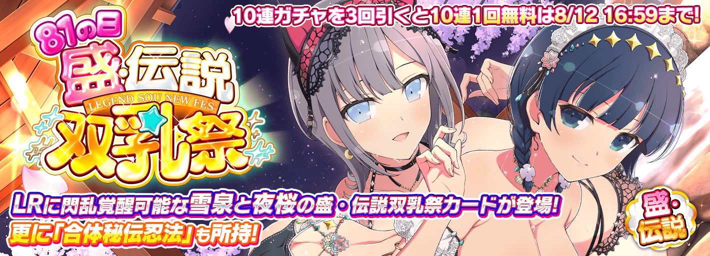 今回の81の日盛・伝説双乳祭では、超強力な「雪泉」「夜桜」の盛・伝説双乳祭カードが登場!