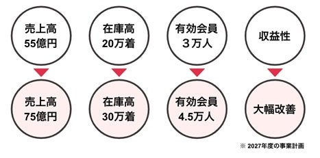 メンズの事業拡大を踏まえ、レディースも含めた事業規模は、2027年度で、売上高約75億円、有効会員数4万5,000人を目指します。