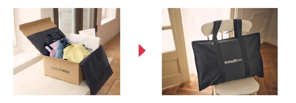 アナザーアドレスでは、サステナブルなビジネスモデルをコンセプトの根幹に定め事業を推進しています。その中で、サービス開始からお客様への配送毎に発生する多量の段ボール、ビニール廃棄物は大きな課題となっていました。この梱包資材廃棄の課題解決に向けて、アナザーアドレスの物流パートナーである、株式会社日立物流、SMARI(スマリ)、ヤマト運輸株式会社の協力のもと、2023年3月より日本初の再利用可能なガーメントバッグを用いた循環型のアパレル配送をスタートします。