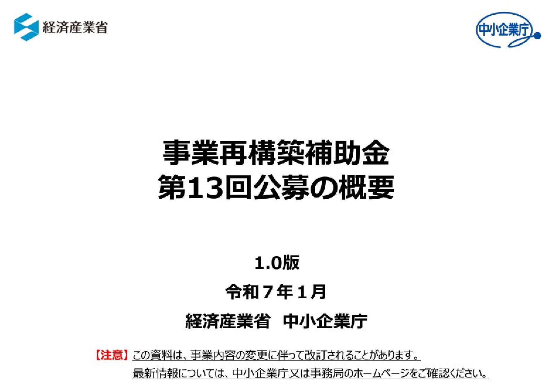 ●【最速解説】公募開始!第13回 事業再構築補助金に関して