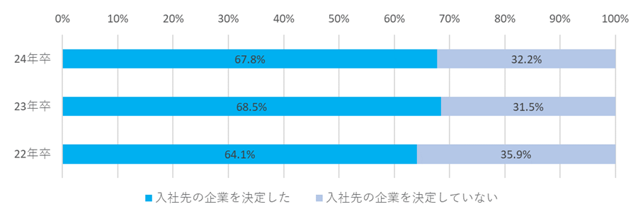 入社予定先を決めた学生は67.8%で前年並み。決めた理由は「その企業の社員の雰囲気や人柄が自分に合っていると感じたから」などが増加【図3、4】