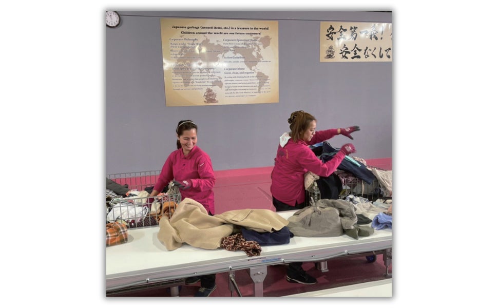 回収された衣類等は、千葉県木更津の国内拠点を経由して、カンボジアの直営センターに輸出され、現地で販売・再輸出が行われます。回収キットの製造・梱包・発送は、国内の福祉作業所で障がいのある方たちの手で行われています。また、国内の輸出拠点ではフィリピン人女性が活躍。カンボジアの直営センターでは障がいのある方やかつてストリートチルドレンだった若者たちが働き、地域の雇用の場となっています。