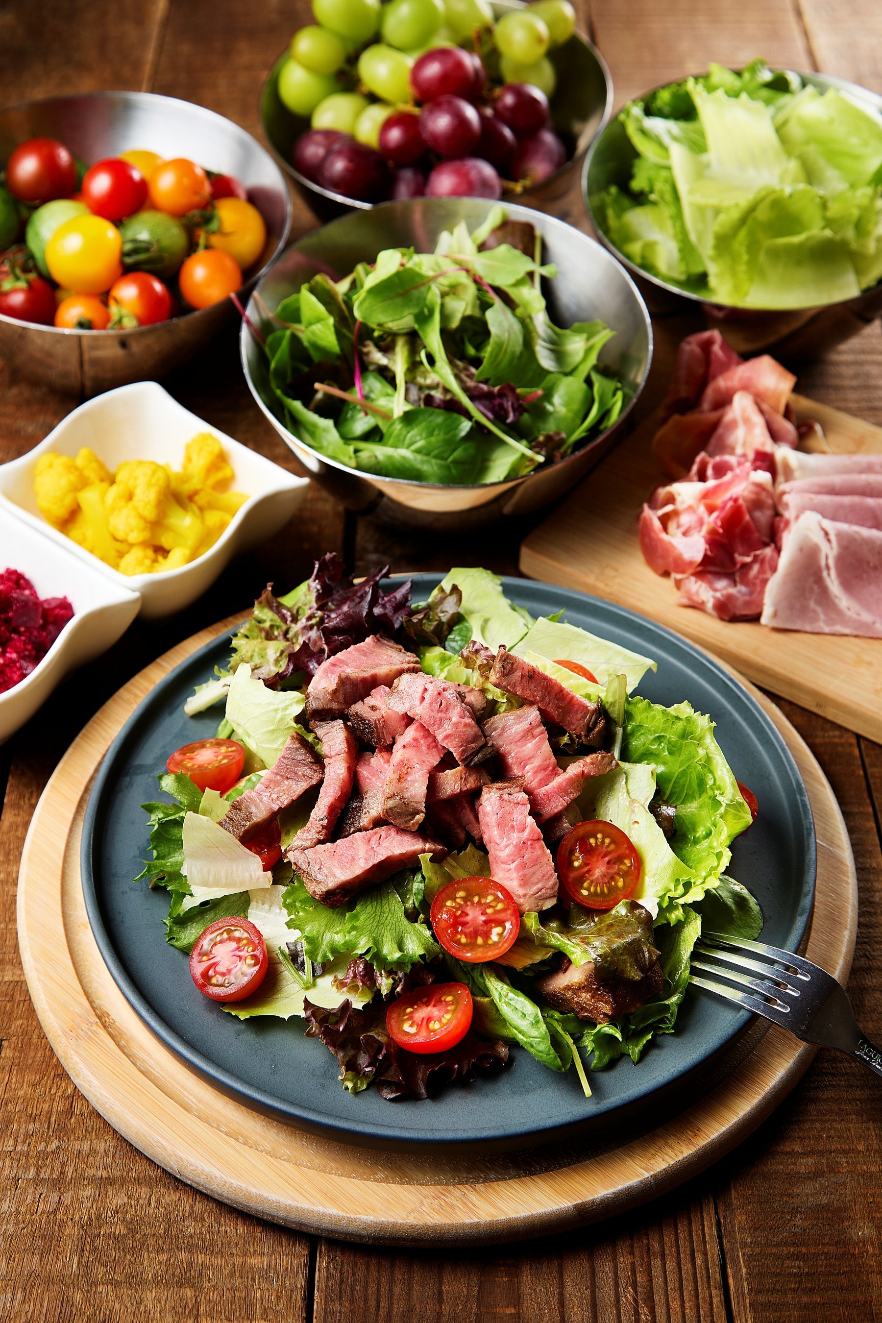 本フェアでは、通常のブッフェを“肉々しく“パワーアップし、無限大に肉料理のアレンジをお楽しみいただける「DIYミートバー」としてご提供いたします。お客様ご自身で、“肉×パン×野菜×ソース“を自由に組み合わせていただき、オリジナルな“最強肉メニュー”をアレンジしていただくことができます。柔らかくジューシーなカリフォルニア Tri Tip風ビーフBBQや、スパイスが薫るさっぱりとした地中海風のミートボール、じっくり味が染みこんだタンドリースパイスチキンなど、メインの肉料理も多様なラインアップをご用意しています。トルティーヤやコッペパン、アボカドディップやサルサソースなどの多彩な組み合わせを自由にアレンジいただき、ワクワクする肉料理を発見できるかもしれません。さらに今回のフェアでは、肉とサラダを掛け合わせた新提案として、「肉に恋するサラダバー 」もご用意しています。”サラダ=ヘルシー”というイメージがありますが、そこにボリューム感、満足感、楽しさを加える新感覚のサラダを、体験できるコーナーです。トッピングも自由にアレンジして、食べ応えのあるオリジナルサラダを是非お楽しみください。さらに今回、SNS上でアレンジレシピの投稿キャンペーンを開催しておりますので、是非皆さまが作ったとっておきのレシピをご投稿ください。