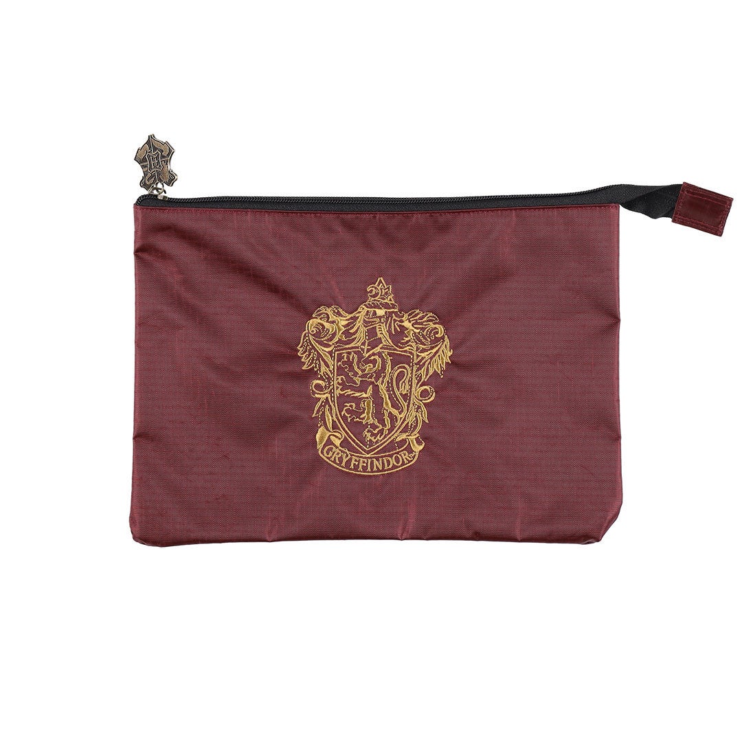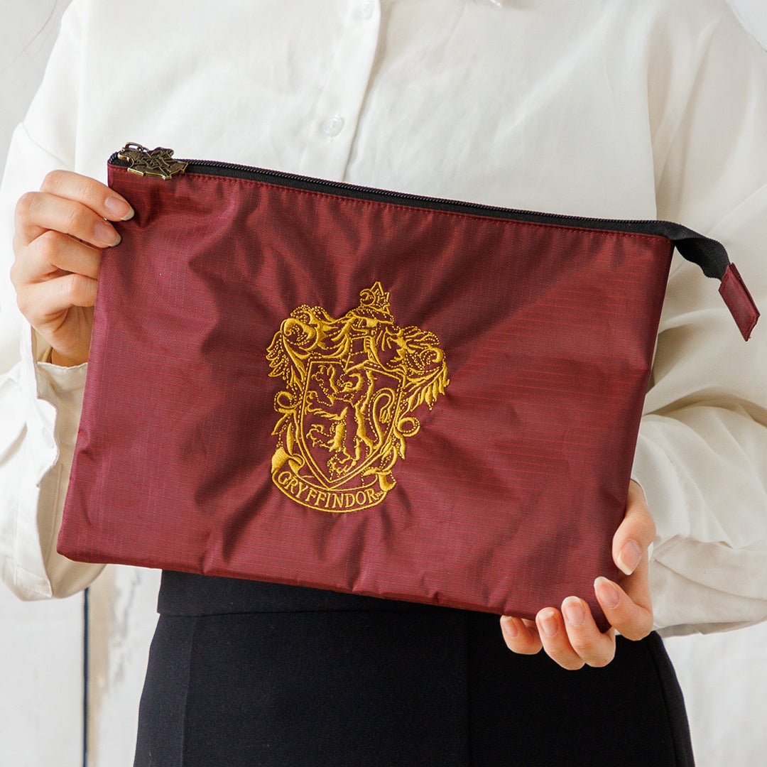 かさばらずに持ち歩ける便利なフラットポーチです。ホグワーツ魔法魔術学校の各寮のシンボルカラーの生地の中央に寮のエンブレムの刺繍をほどこしました。ボストンバッグと同様に内生地はホグワーツ生のマフラーをイメージしたデザインになっています。内ポケットつきで、小物を分けて収納できます。ボストンバッグとセットでのご使用もおすすめです。