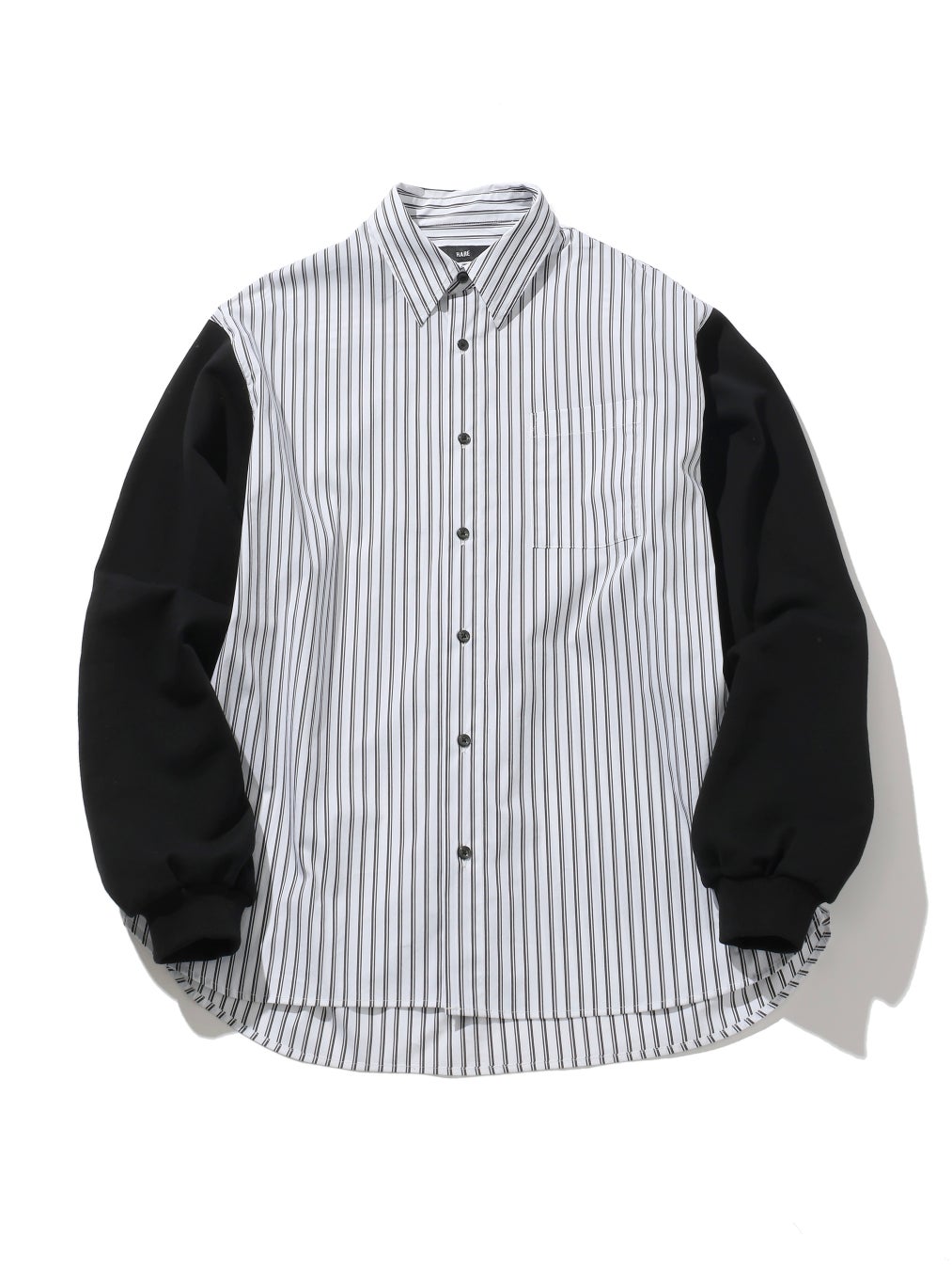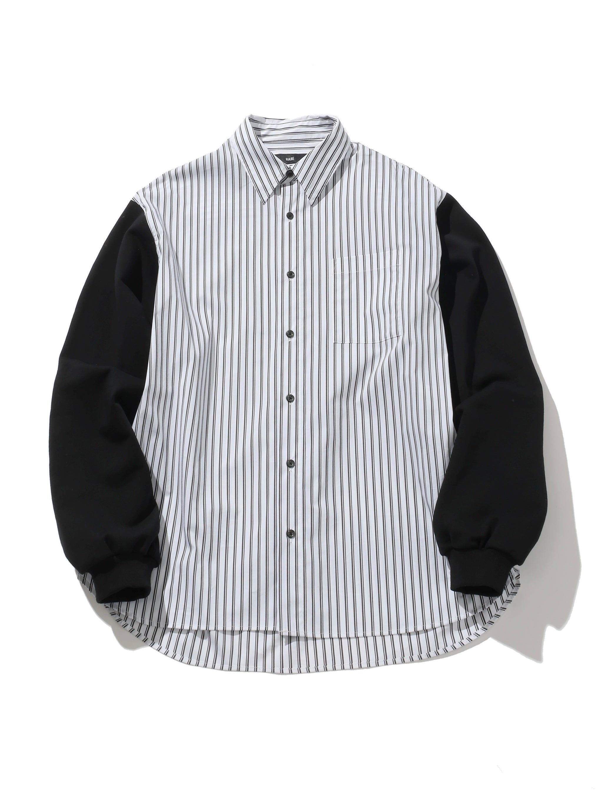 袖がスウェット生地に切り替わったデザインシャツ。